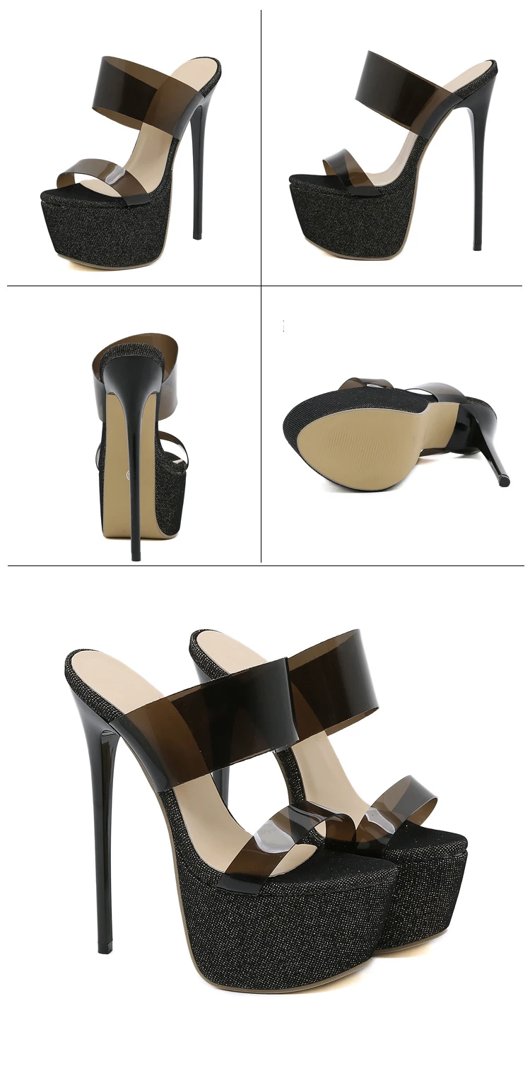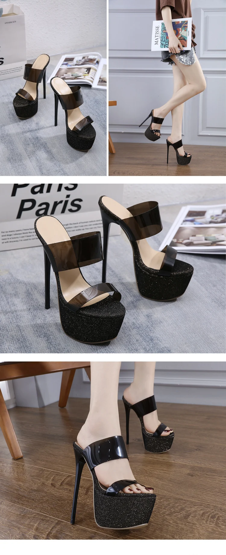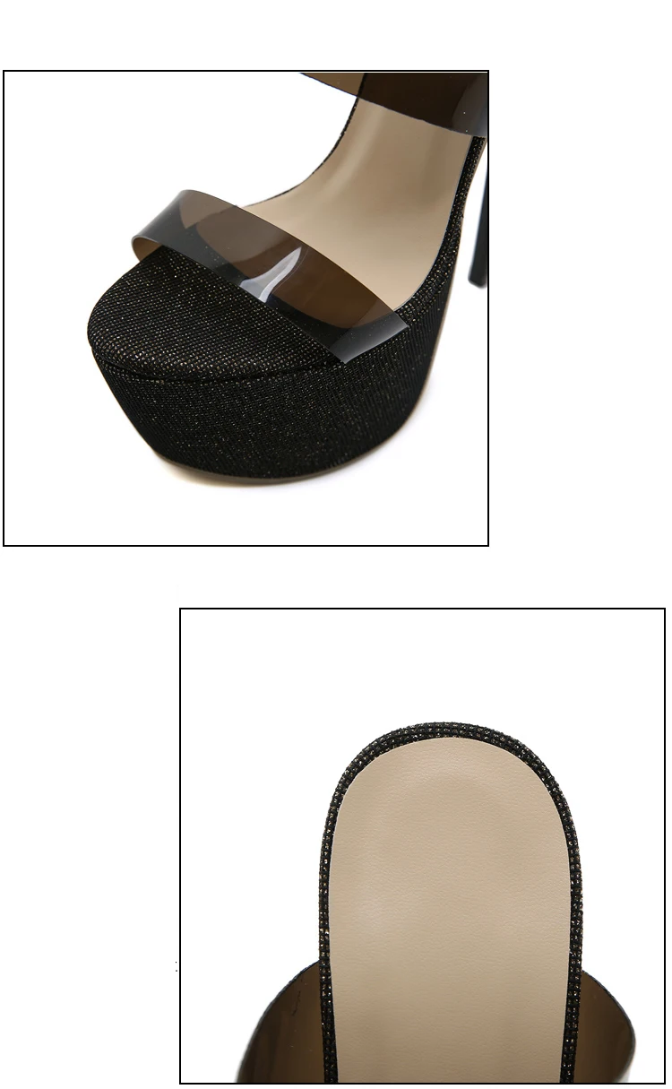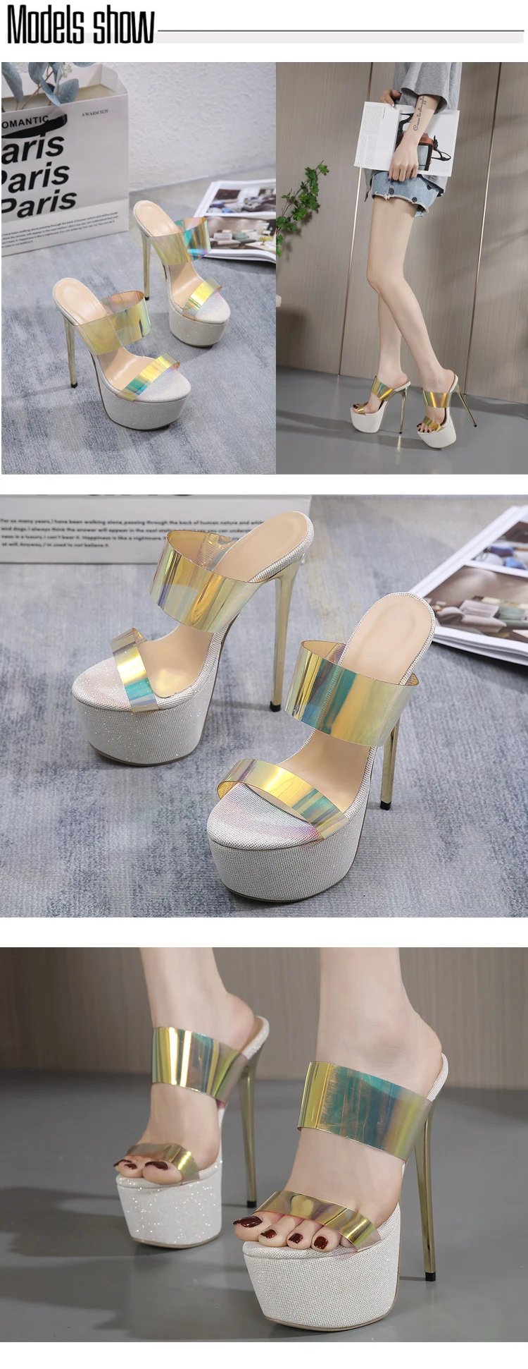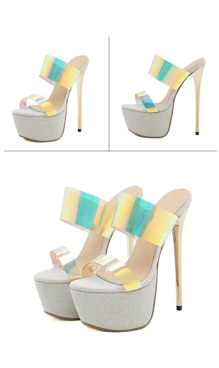 Spring Slip-On Rome Concise Mixed Colors Summer Fashion Party Head 2023PVC Bling Women High Heel Stiletto Platform Sandals Shoes