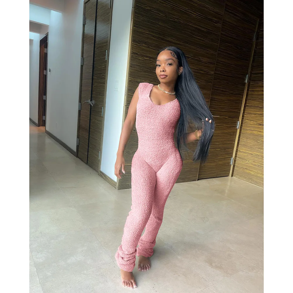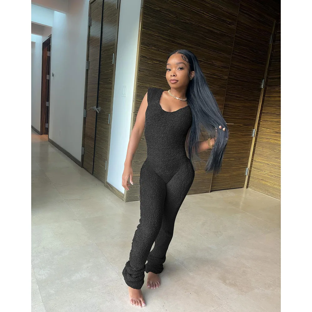 Spring Stretch One Piece Jumpsuit For Women 2023 Solid Sleeveless Jumpsuits Casual Pile of Pants Rompers Womens