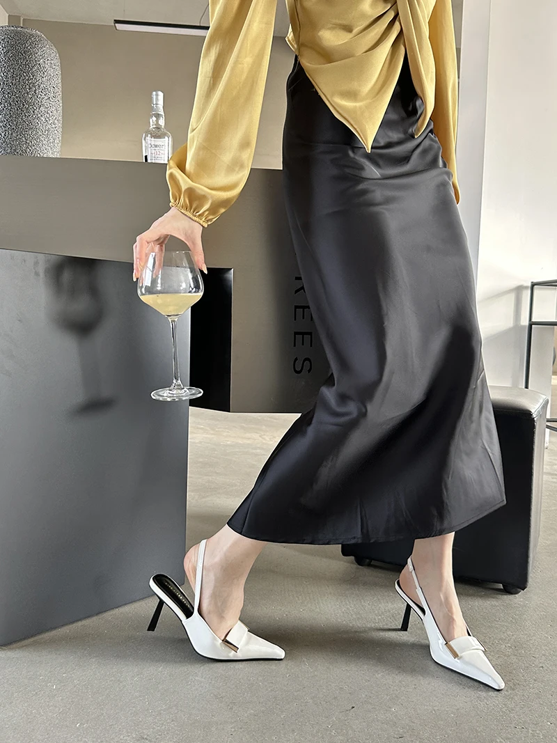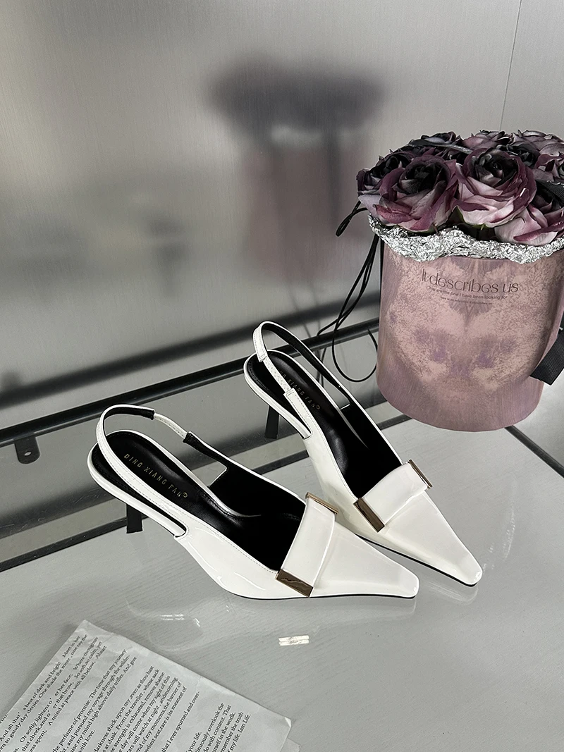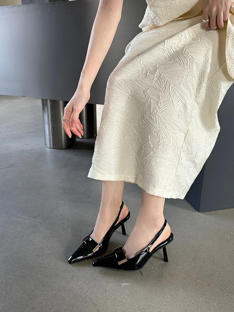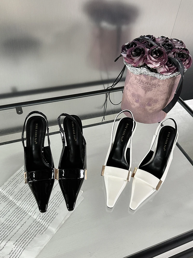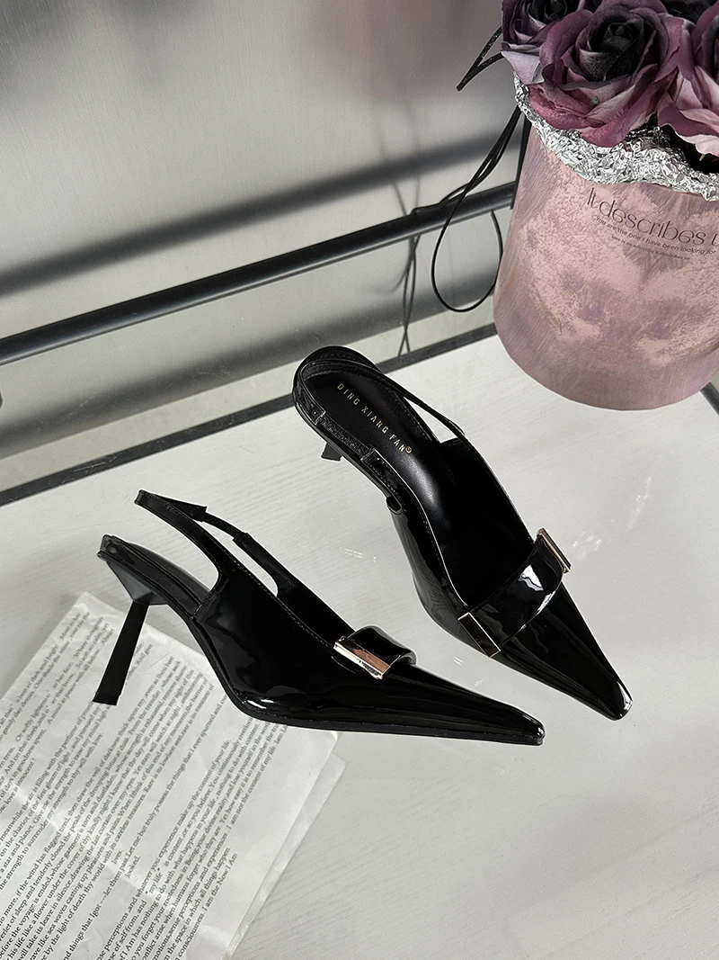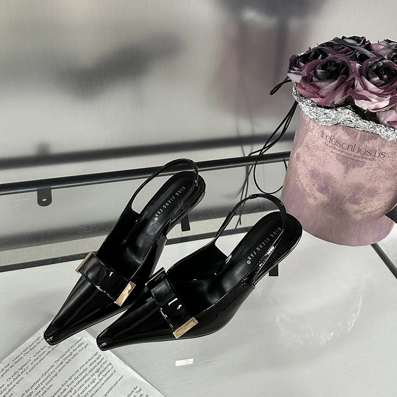 Spring/Summer 2024 New pointed patent leather low-cut high-heeled shoes fashion all-match back-empty stiletto sandals