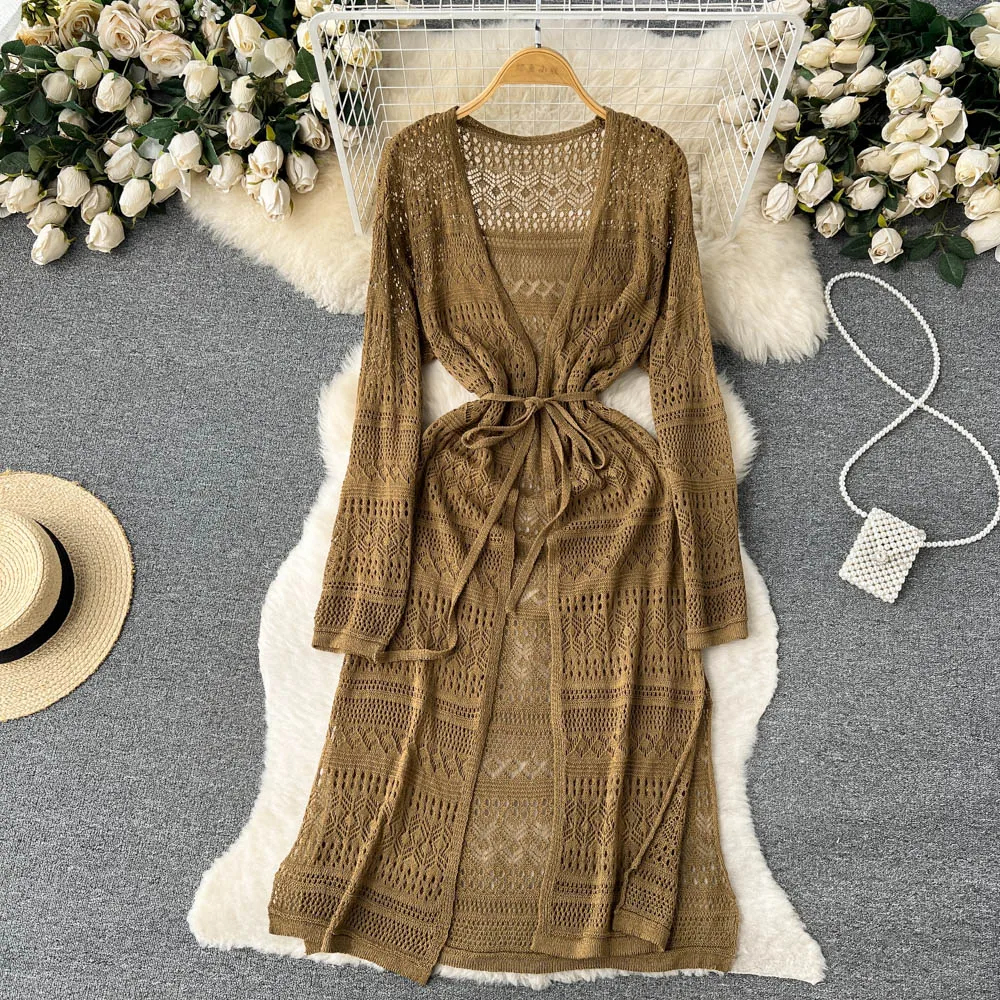 Spring Summer And Summer Casual Cardigan Women's Dress Hollowed Out Holiday Style Slit Dress