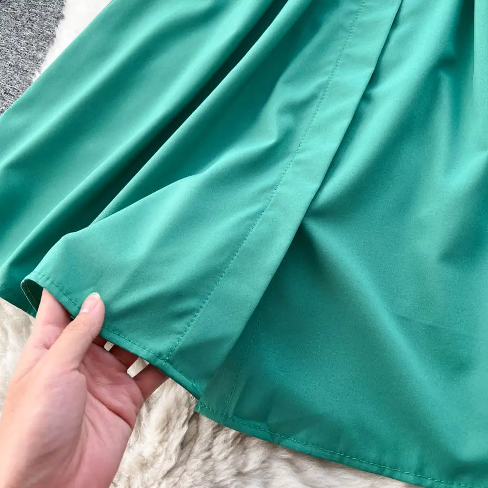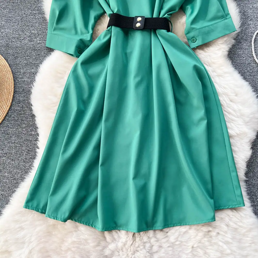 Spring Summer New Solid Color Lapel Five-Point Sleeve Mid-Length A-Line Shirt Dress