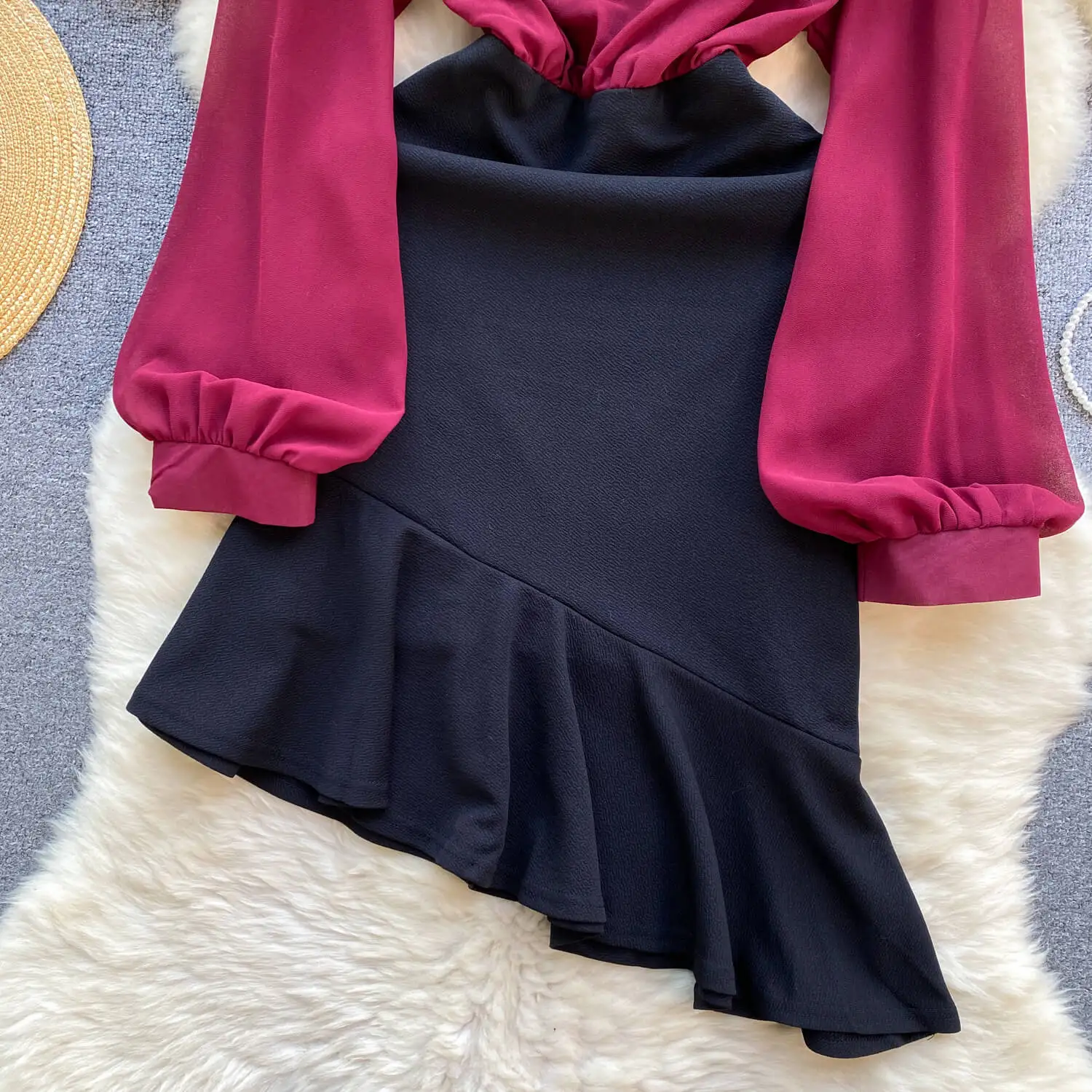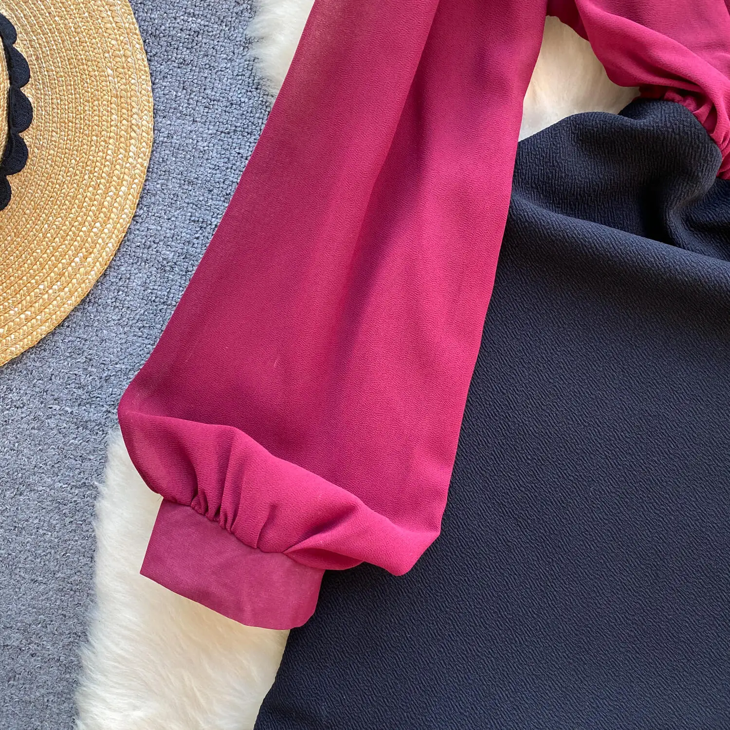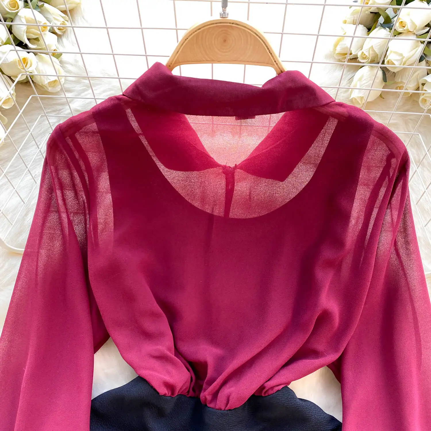 Spring Vintage Turn-down Collar Tunic Slim Hip Midi Dress For Women Long Sleeve Empire Lace Dresses Ladies Elegant Dresses