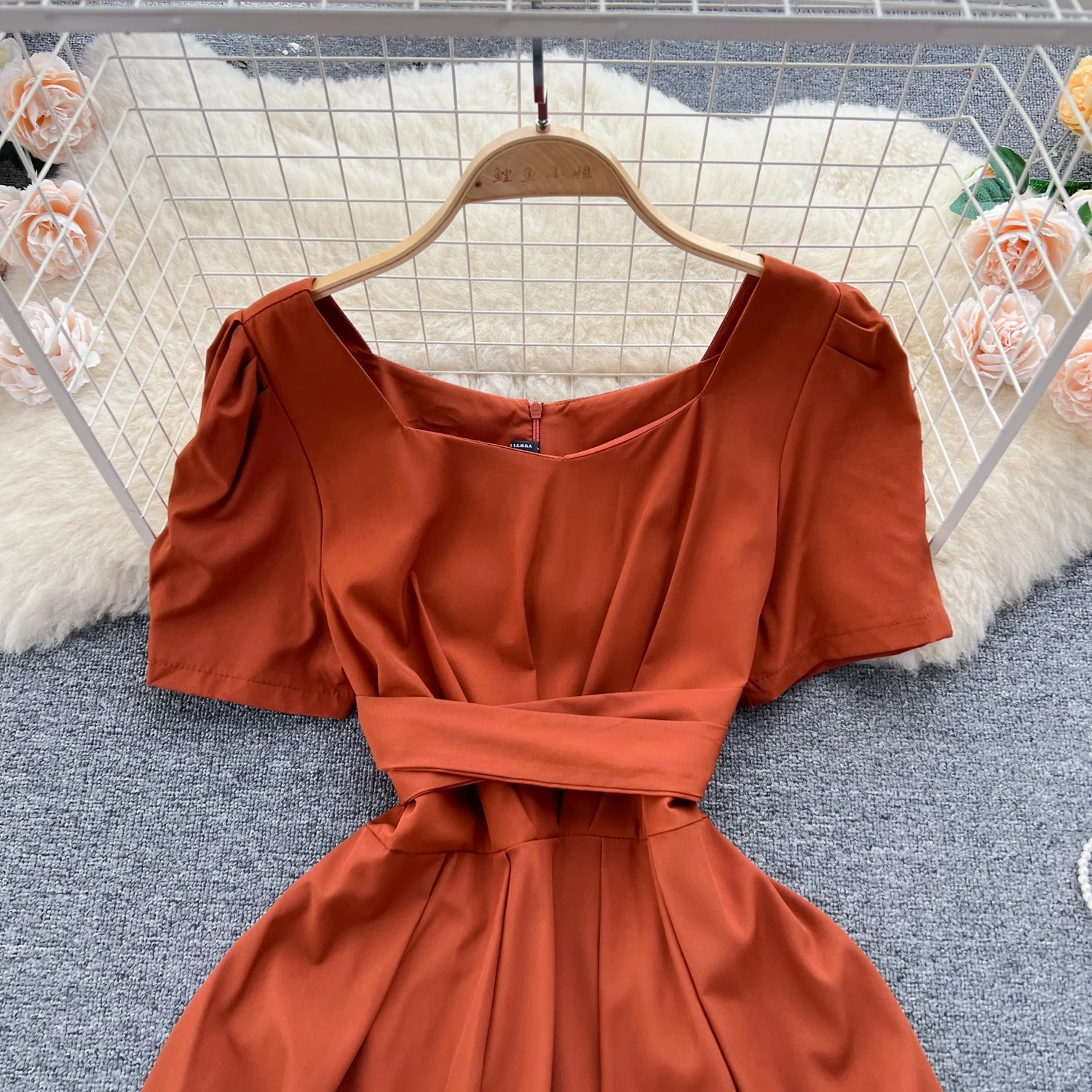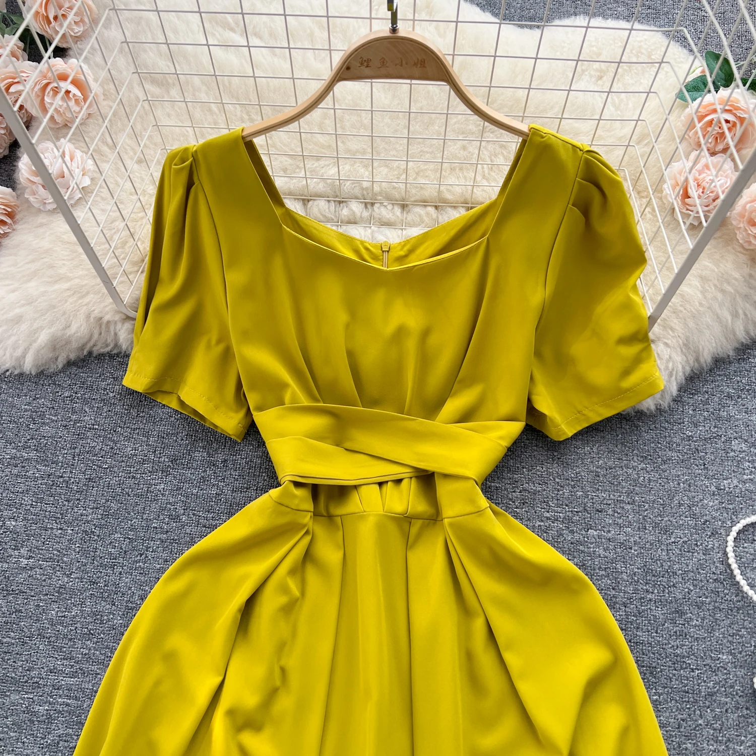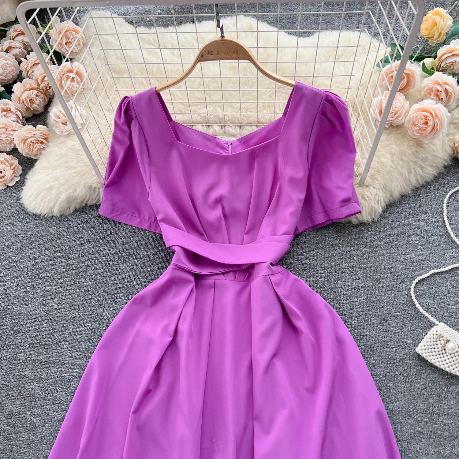 Square Neck Bubble Sleeve Lace Up Waist Dress for Women's Summer New Slim and Elegant A-line Dress sun dress for woman