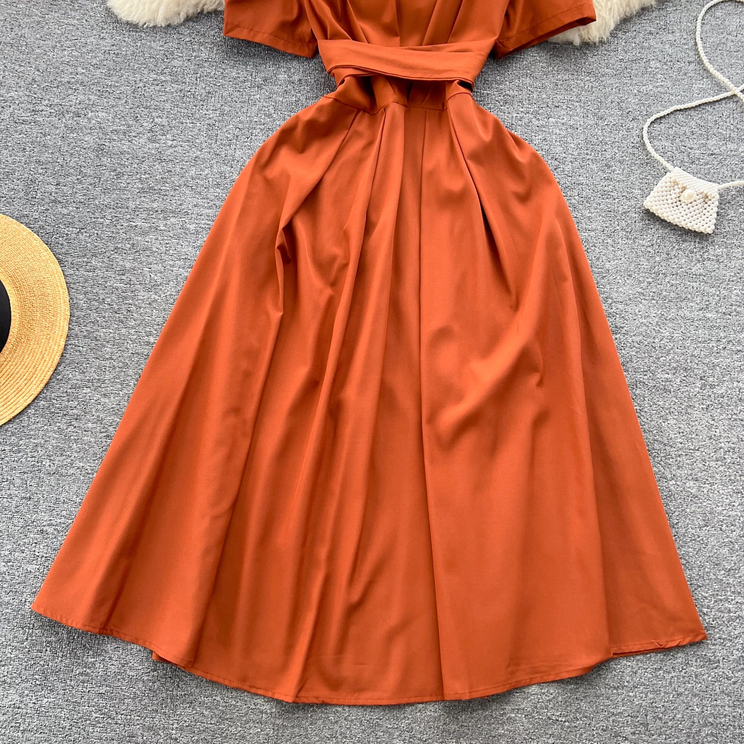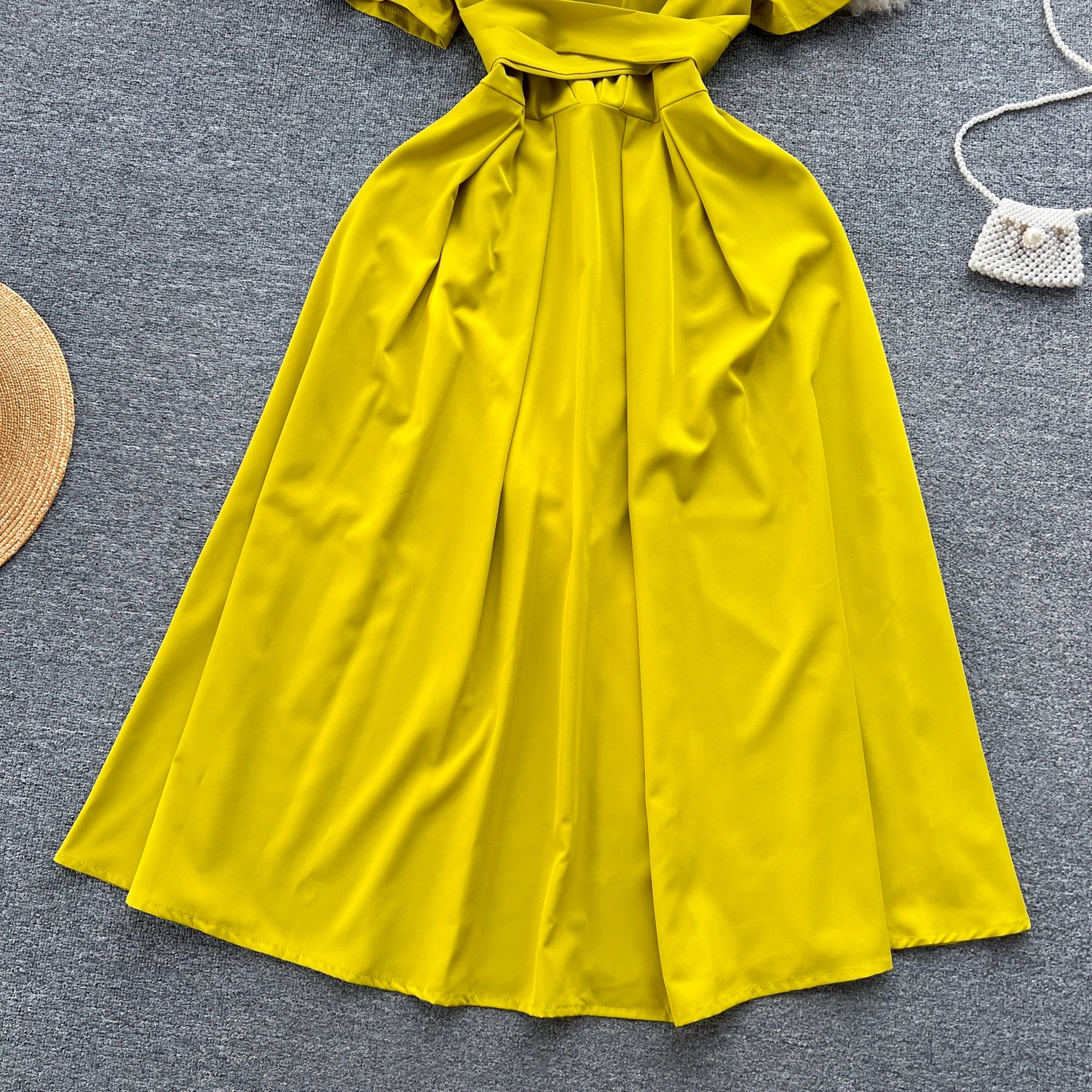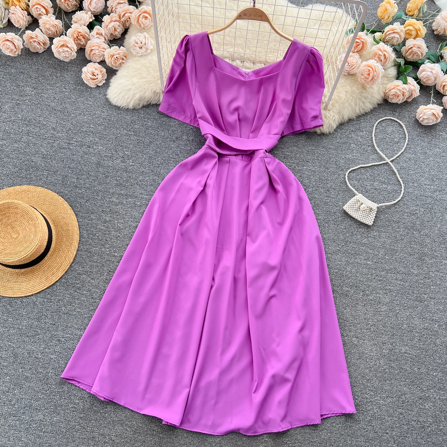 Square Neck Bubble Sleeve Lace Up Waist Dress for Women's Summer New Slim and Elegant A-line Dress sun dress for woman