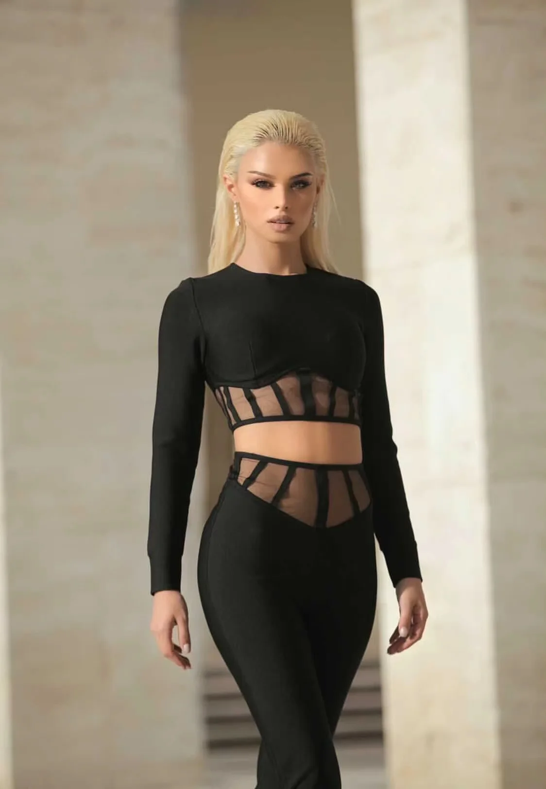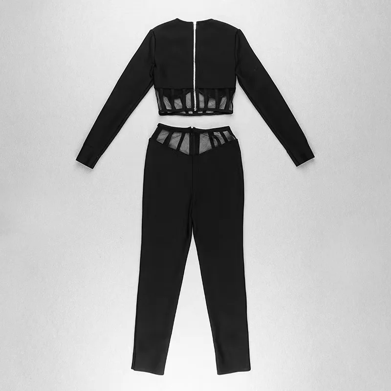SS2248 High Quality Corset Two Piece Set Long Sleeve Tops And Long Pants Black Two Piece Set Women Clothing