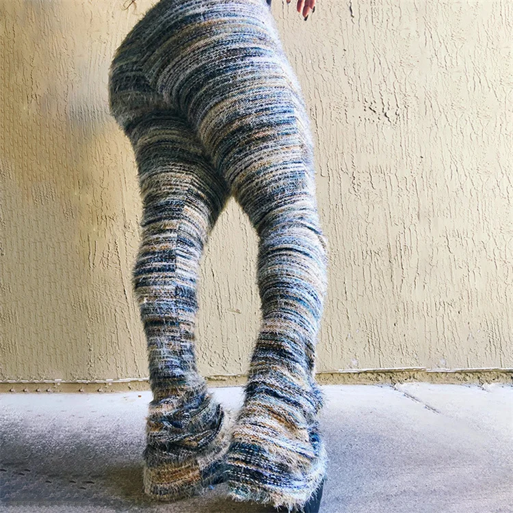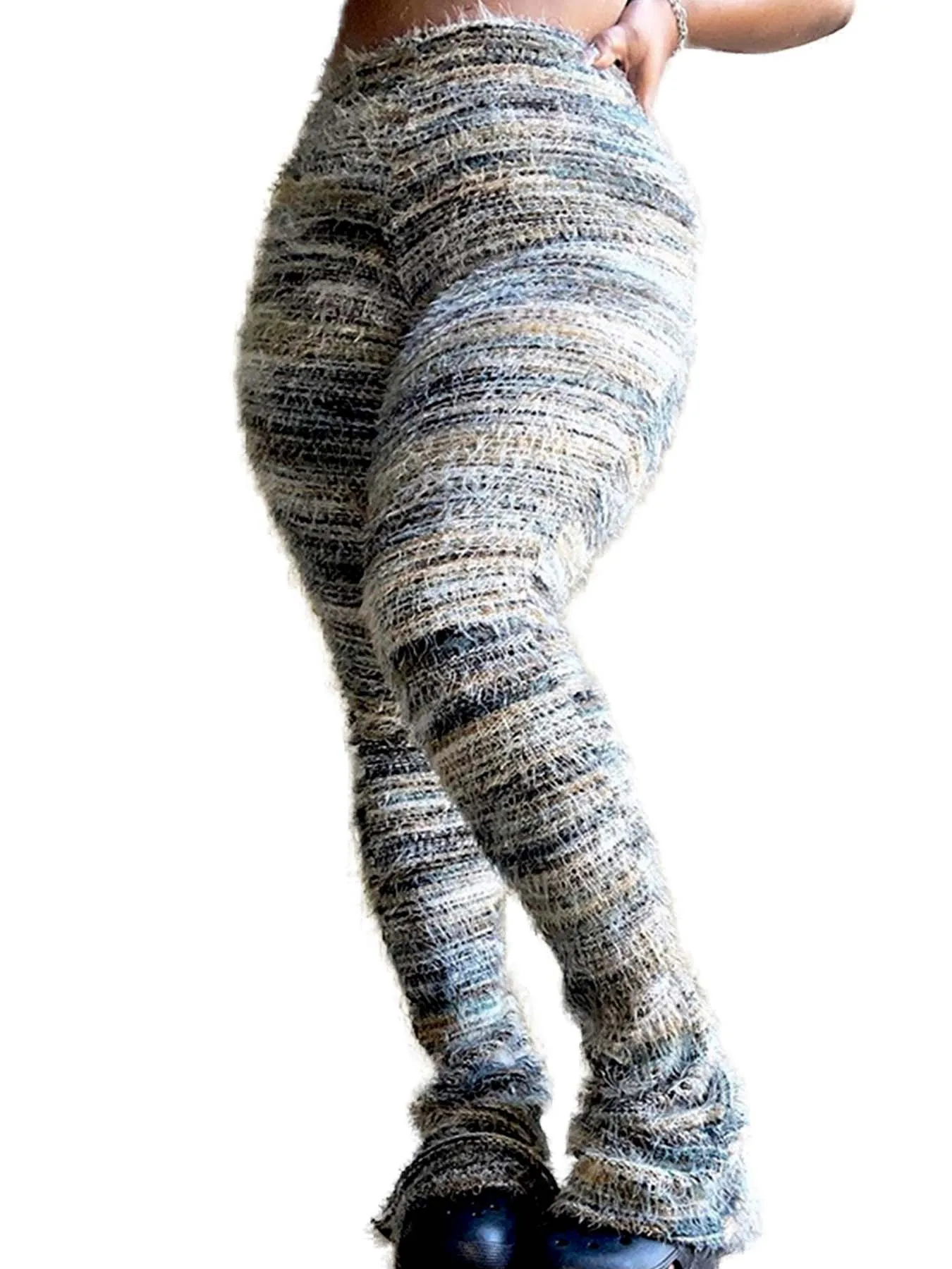 Stacked Furry Pants High Waist Fashion 2023 Women Winter Trouser Skinny Casual Sexy Club Trouser