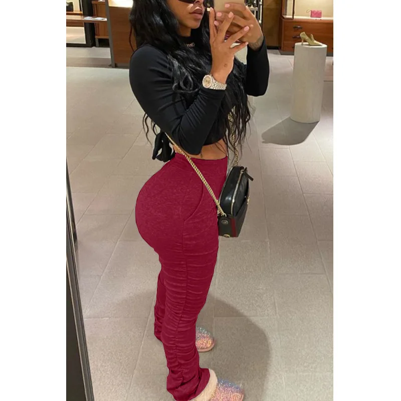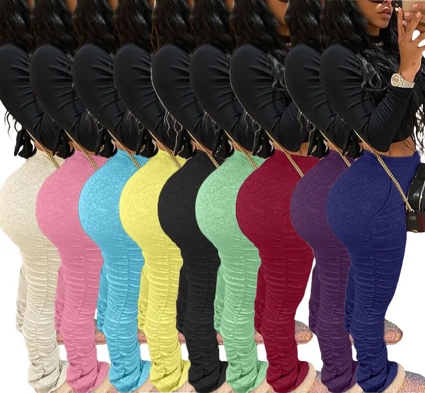 Stacked Leggings for Women New Arrivals 2023 Street Fashion Stacked Pants Women Solid Color Slim Fit Flare Sweat Pants