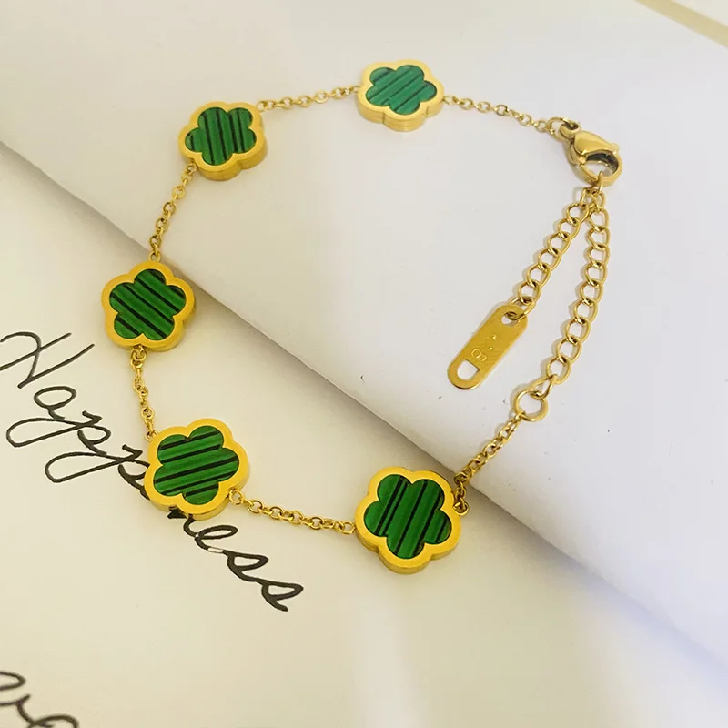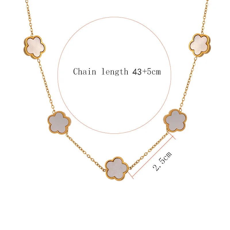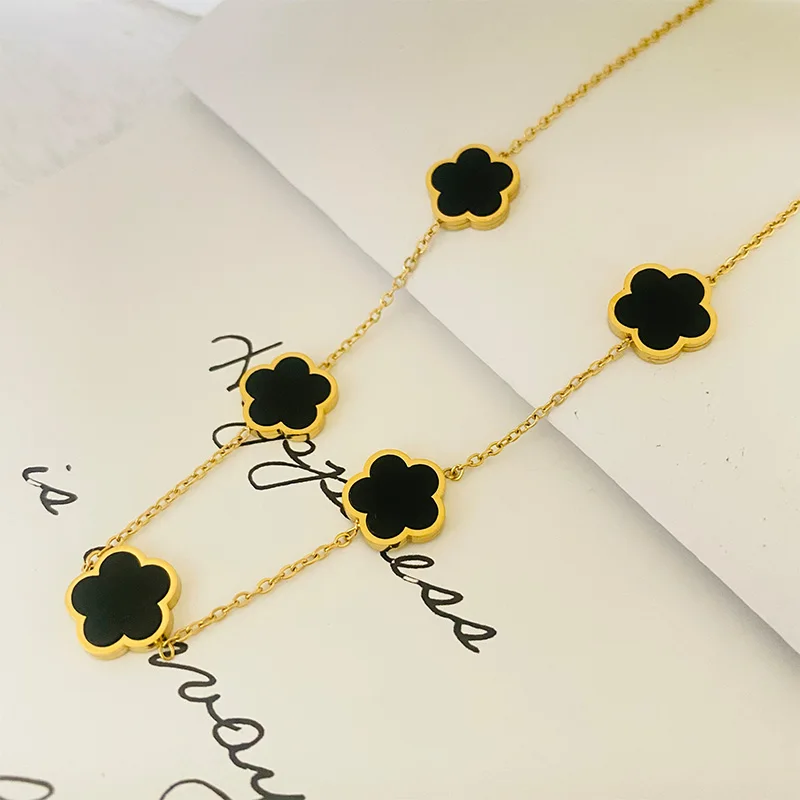 Stainless Steel Flower Necklace with 18K Gold Plated Luxury Design Women's Green Red White Black Pendant Necklace Clover Jewelry