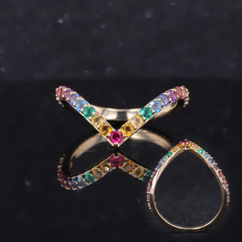 starsgem low price group order moissanite sapphire and other gemstone rainbow ring from Demi