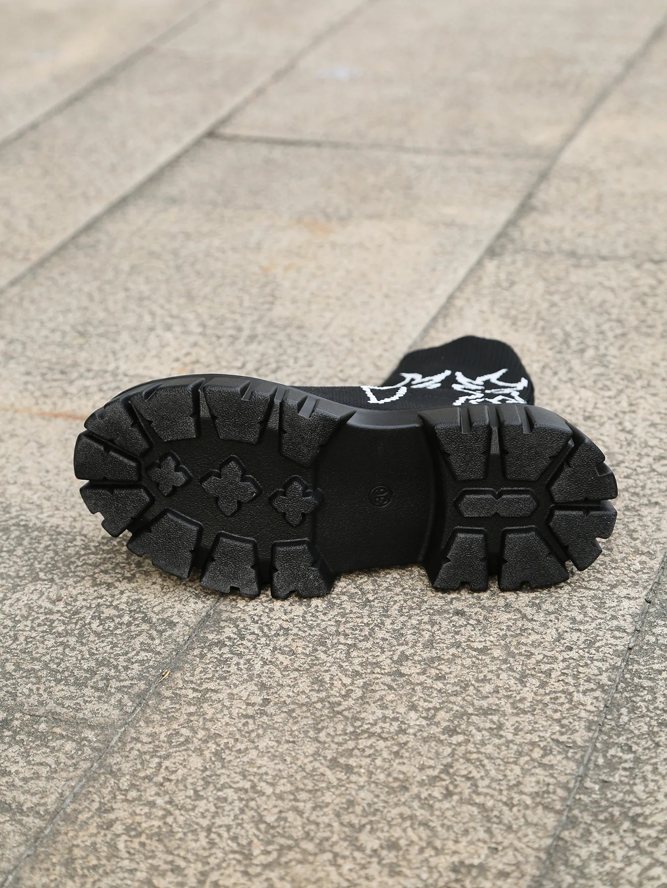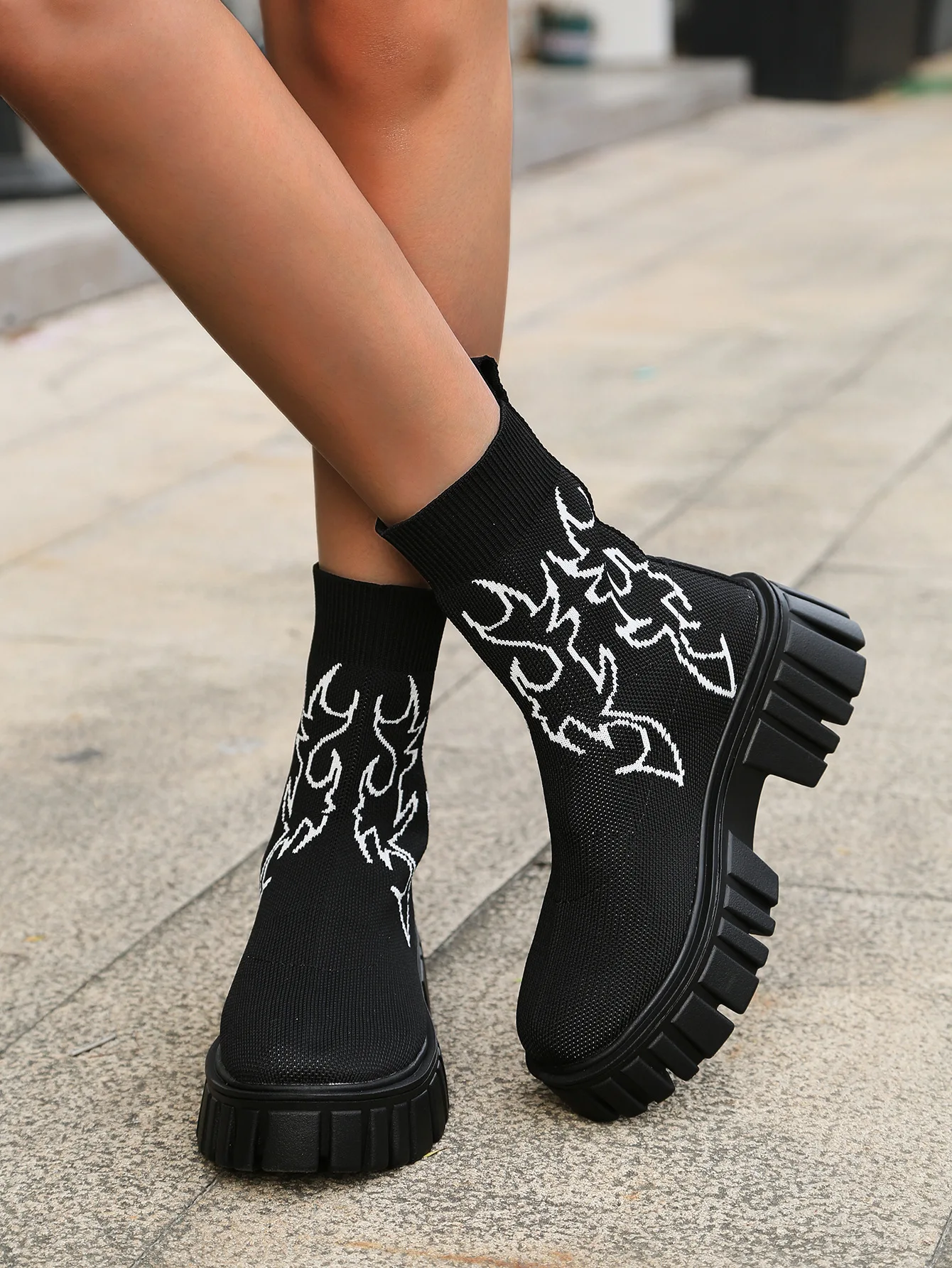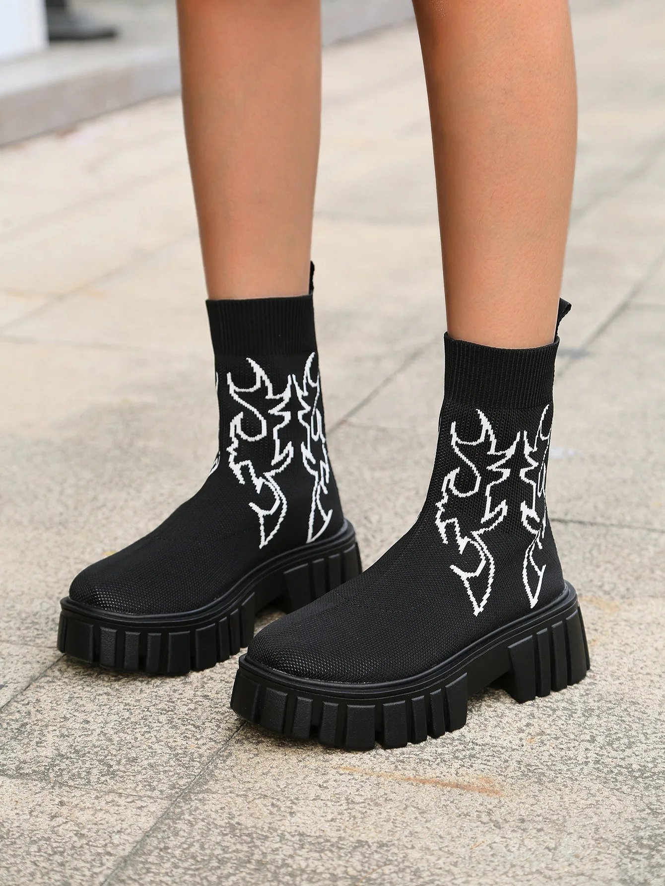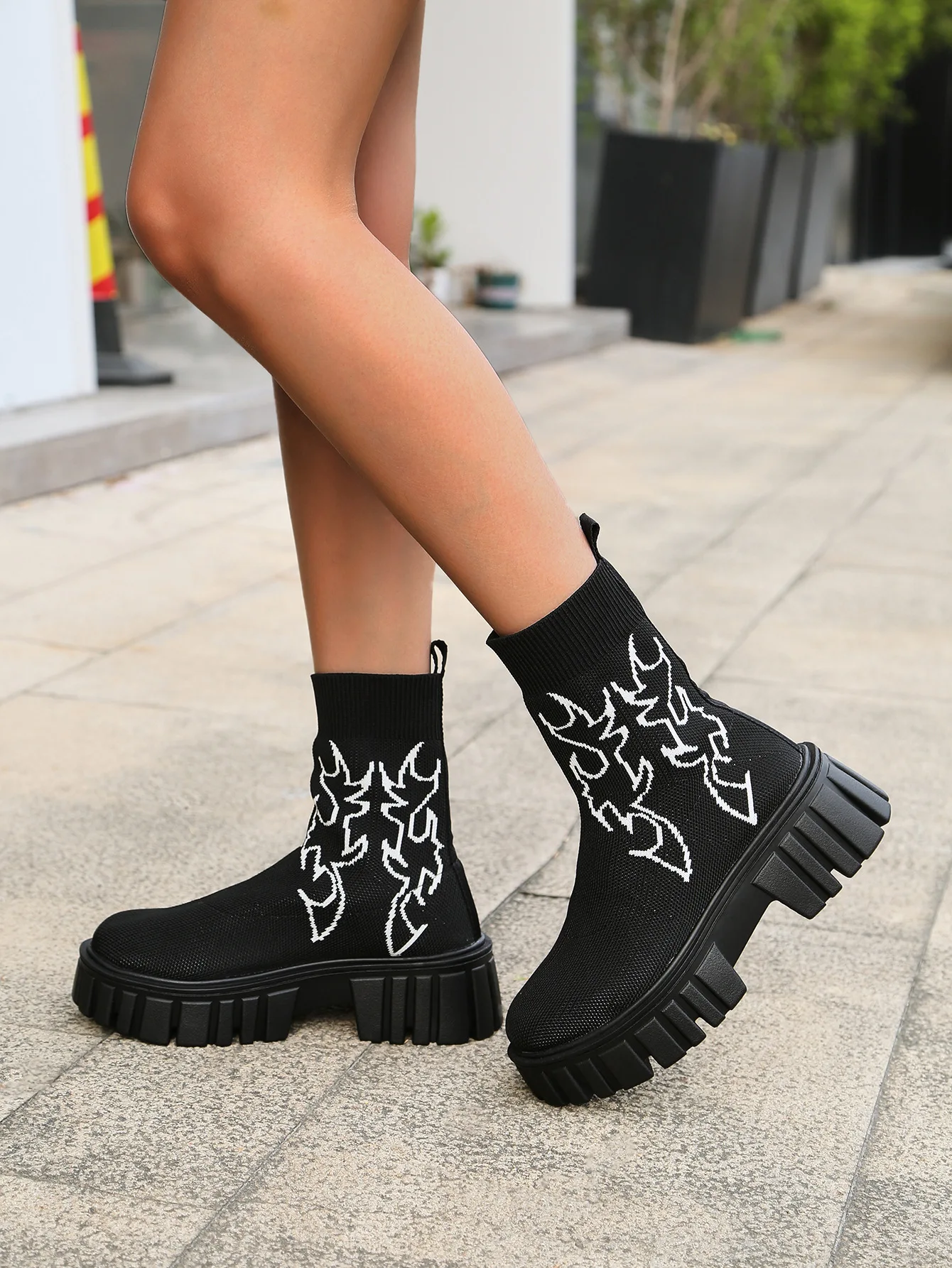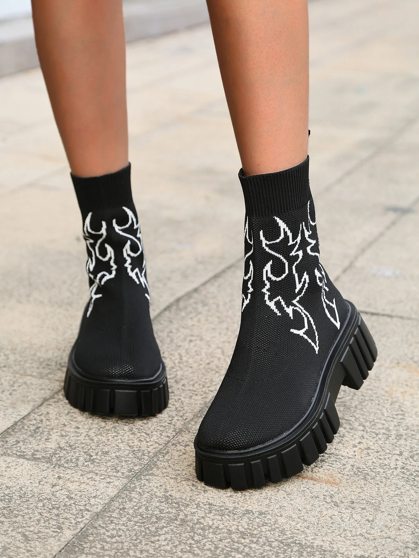 Stock Chunky Heel Botte Pour Femme Sock Trendy Elastic Knitted Short Winter Slip on Women's Ankle Boots Black Women Shoes PU
