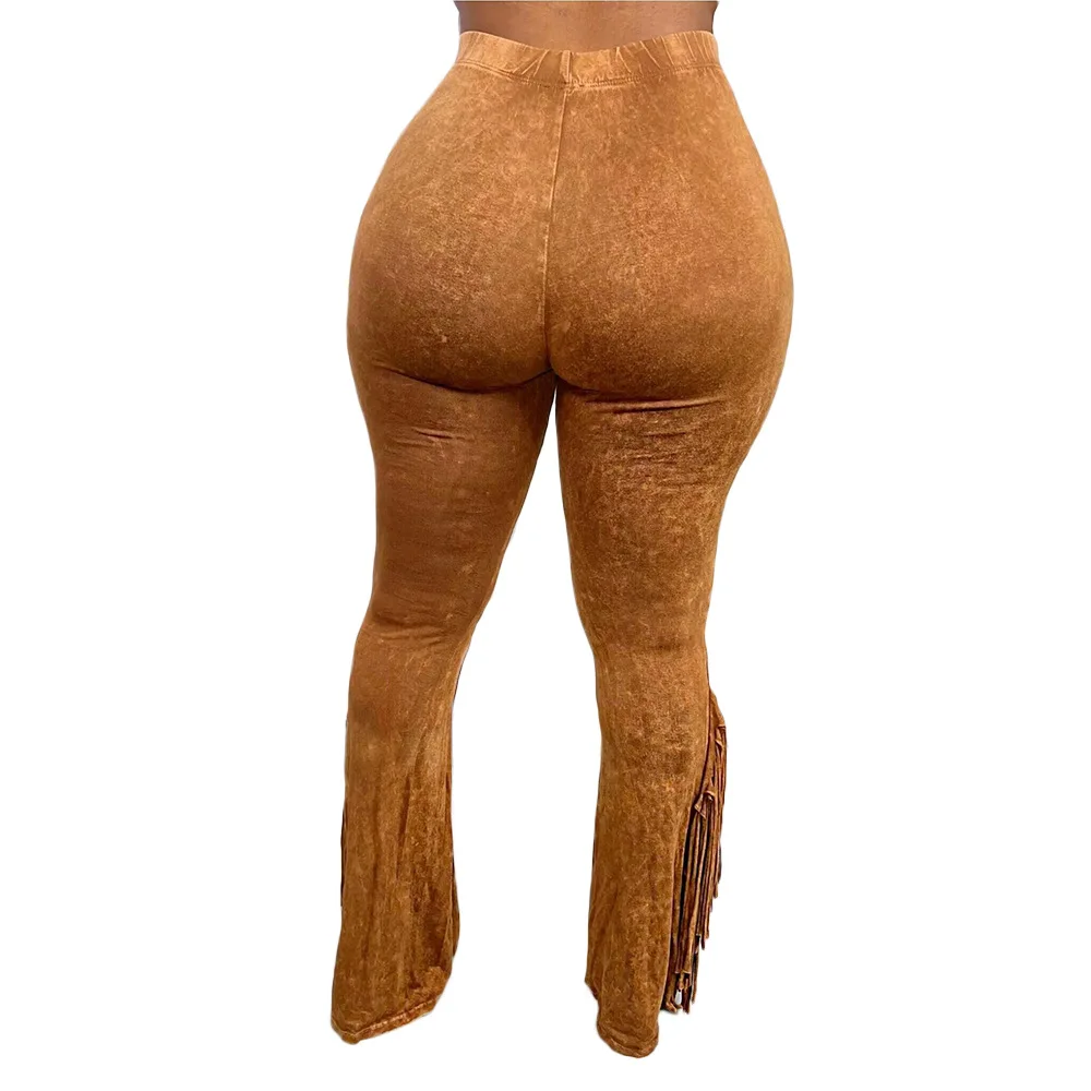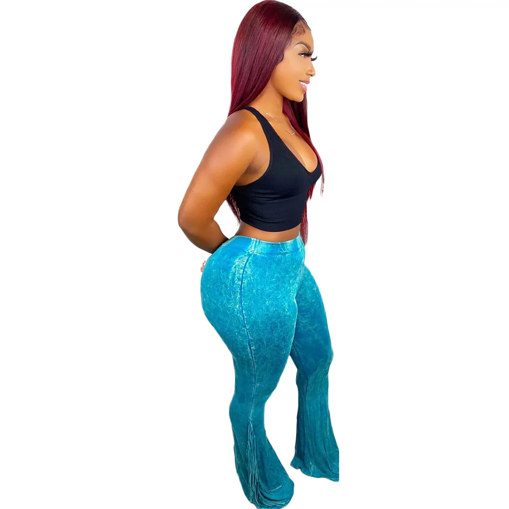 Stoned Washed Track Pants with Fringes for Women 2023 Women Stretch Flare Pants Outfits Fall Sweat Casual Fringe Pants