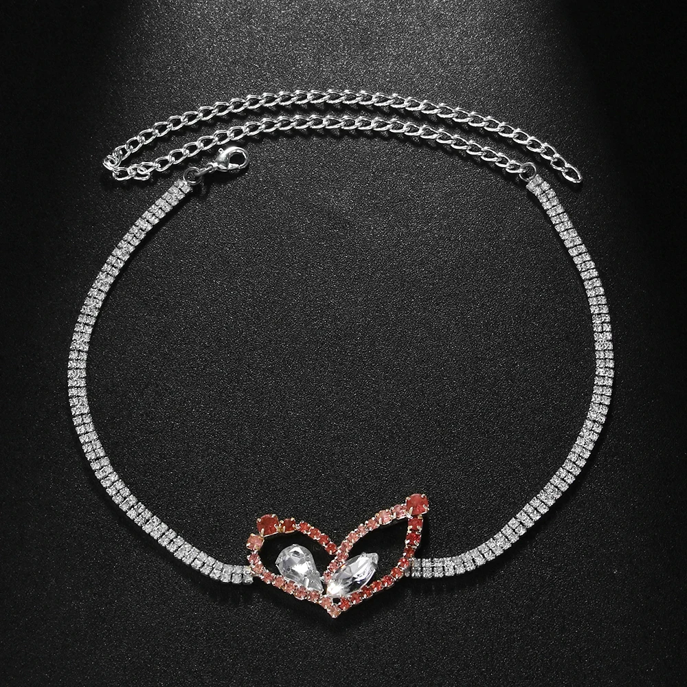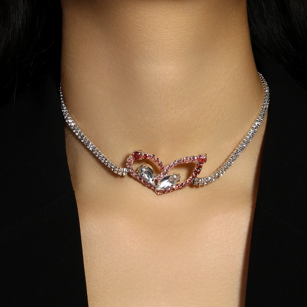StoneFans Fashion Pink Heart Rhinestone Necklace Jewelry For Women Girls Gifts Water Drop Necklace Choker Chain