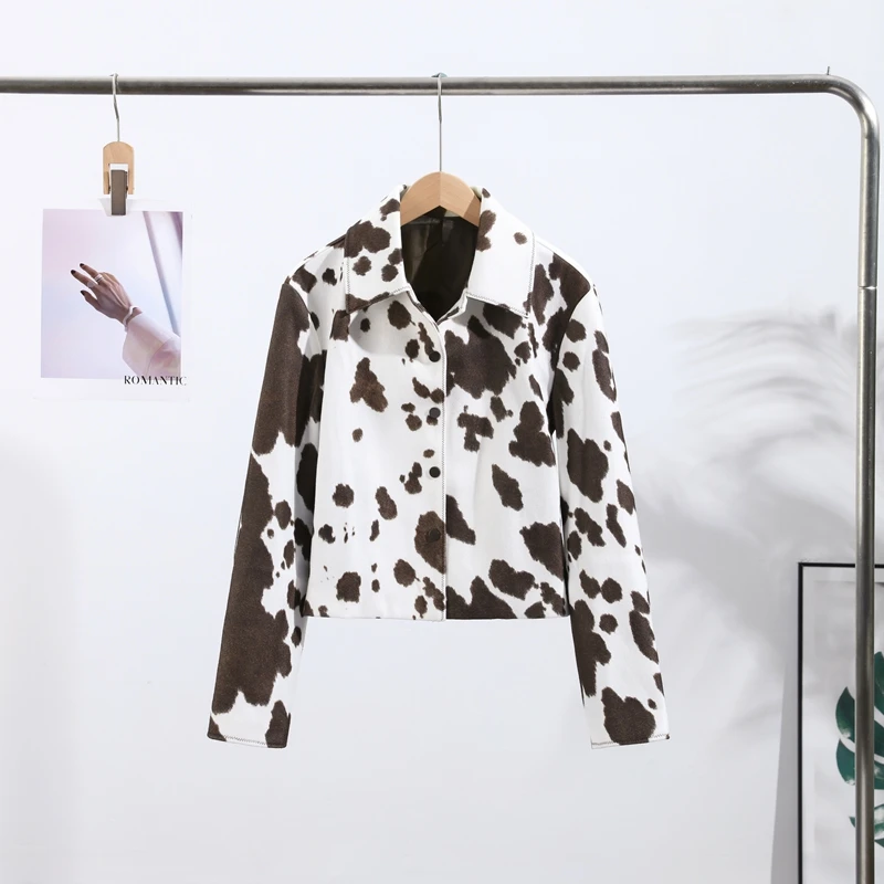 Street Leopard Print Women Short Jacket Elegant Lapel Button Long Flare Sleeve Female Outwear 2025 Autumn Lady Streetwear