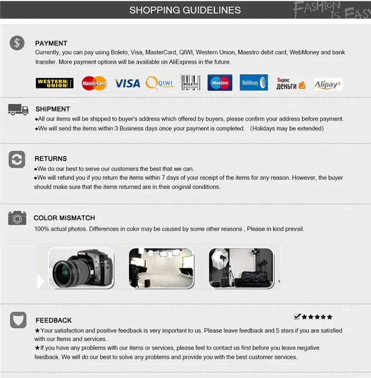We try to display color as accurate as possible, but due to lighting, different display, personal understanding of color and other reasons, the color of the actual item may be slightly different from the photo on the web page. Please refer to the color of the actual item as the final color. The color difference does not belong to the quality problem.