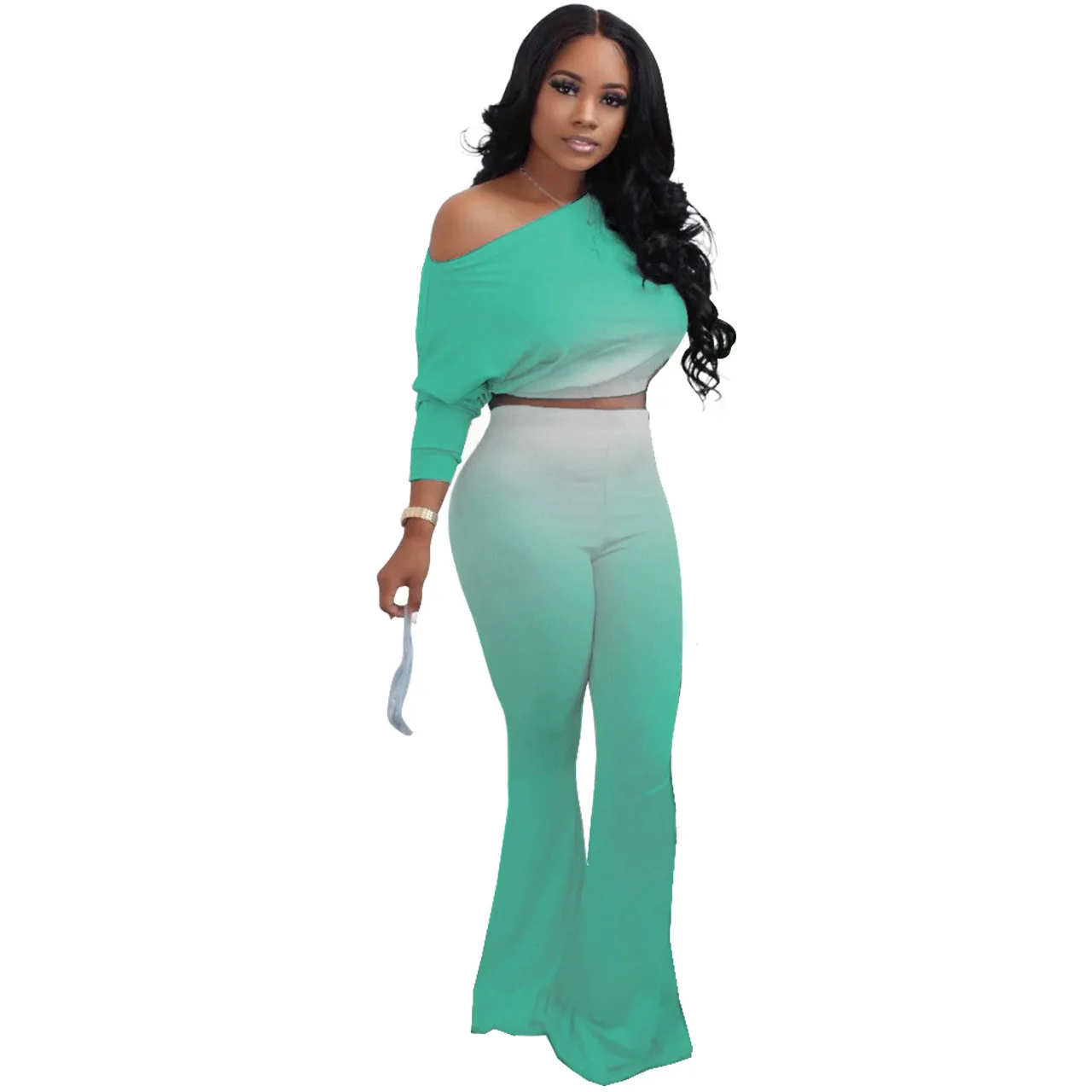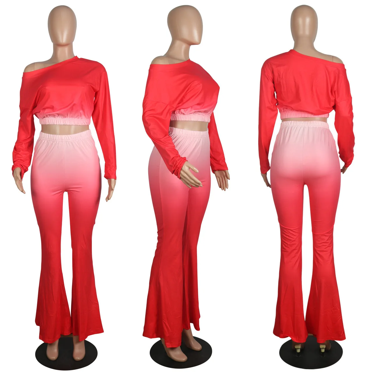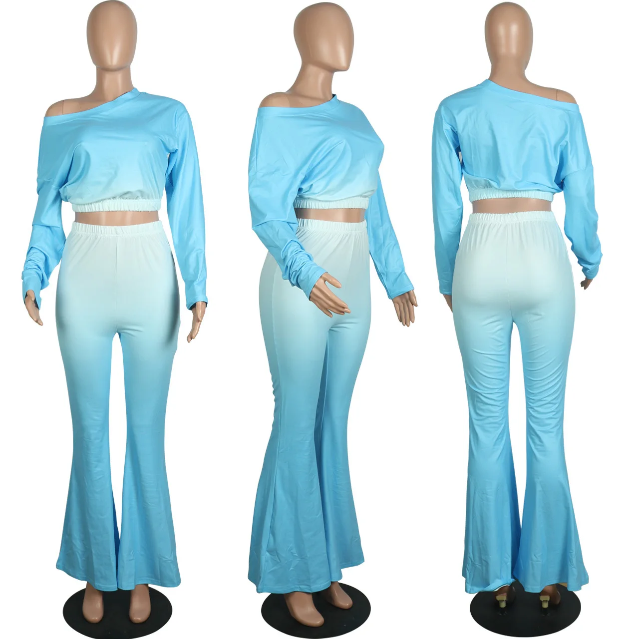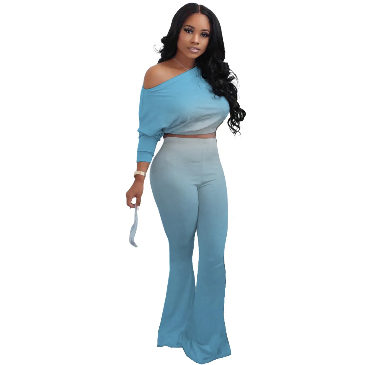 Stylish And Sexy Sloping Shoulders Gradient Color Crop Top women suit women sets woman tops fashionable