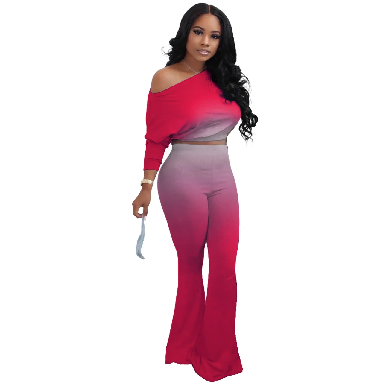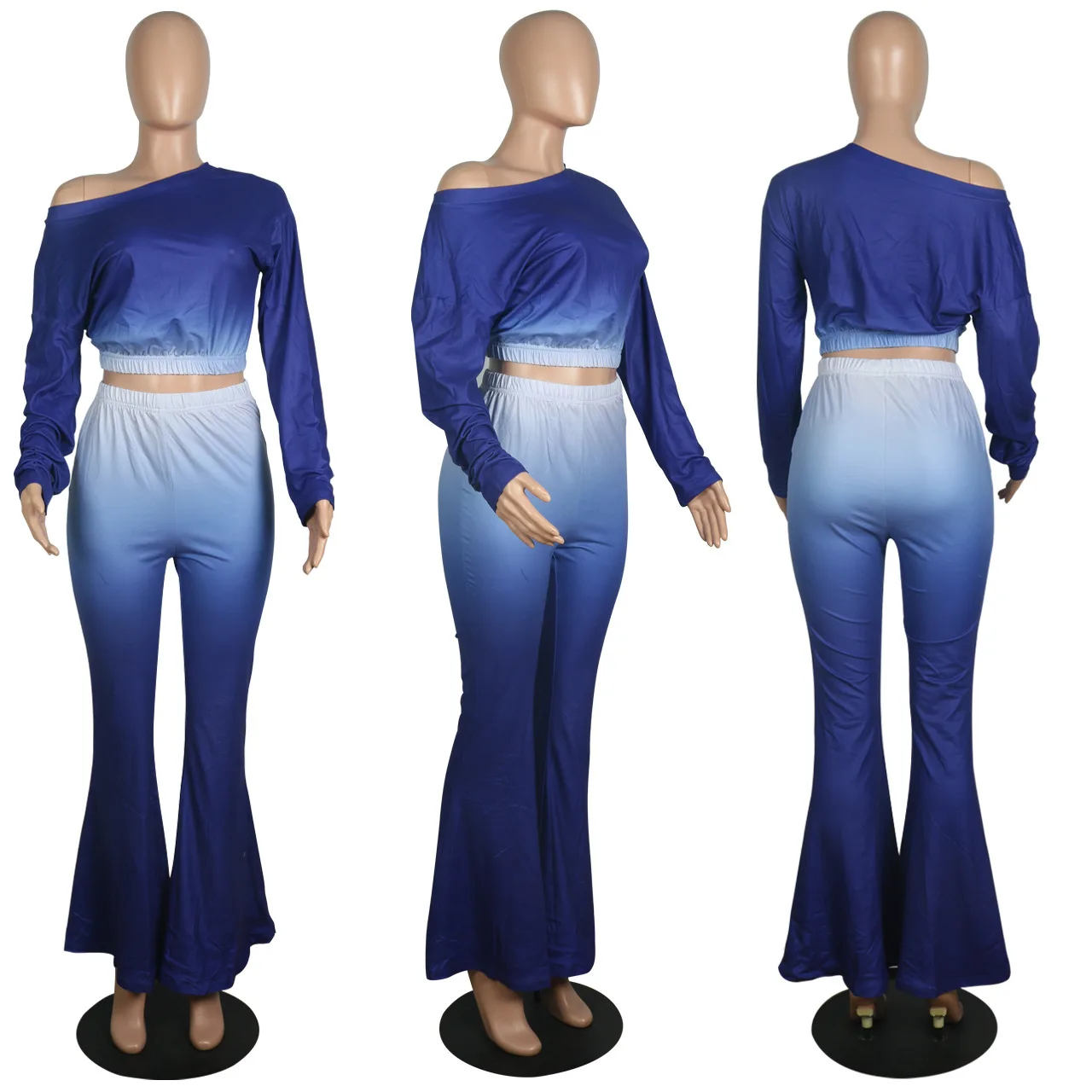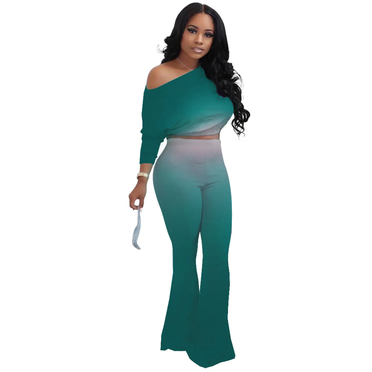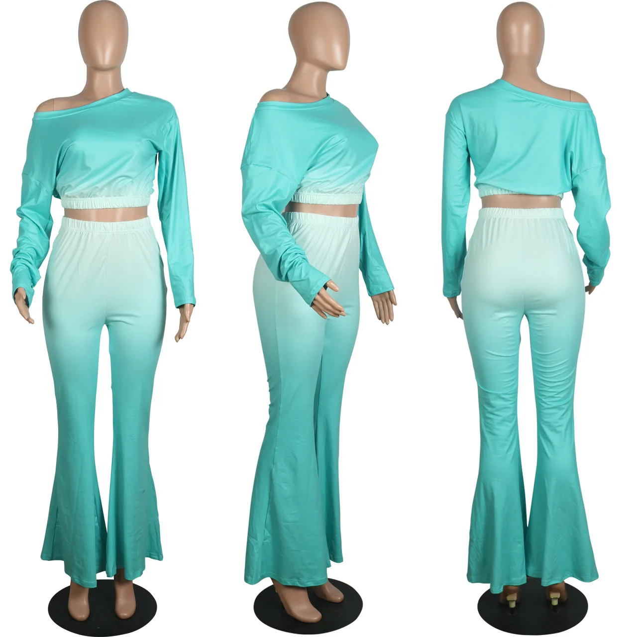 Stylish And Sexy Sloping Shoulders Gradient Color Crop Top women suit women sets woman tops fashionable