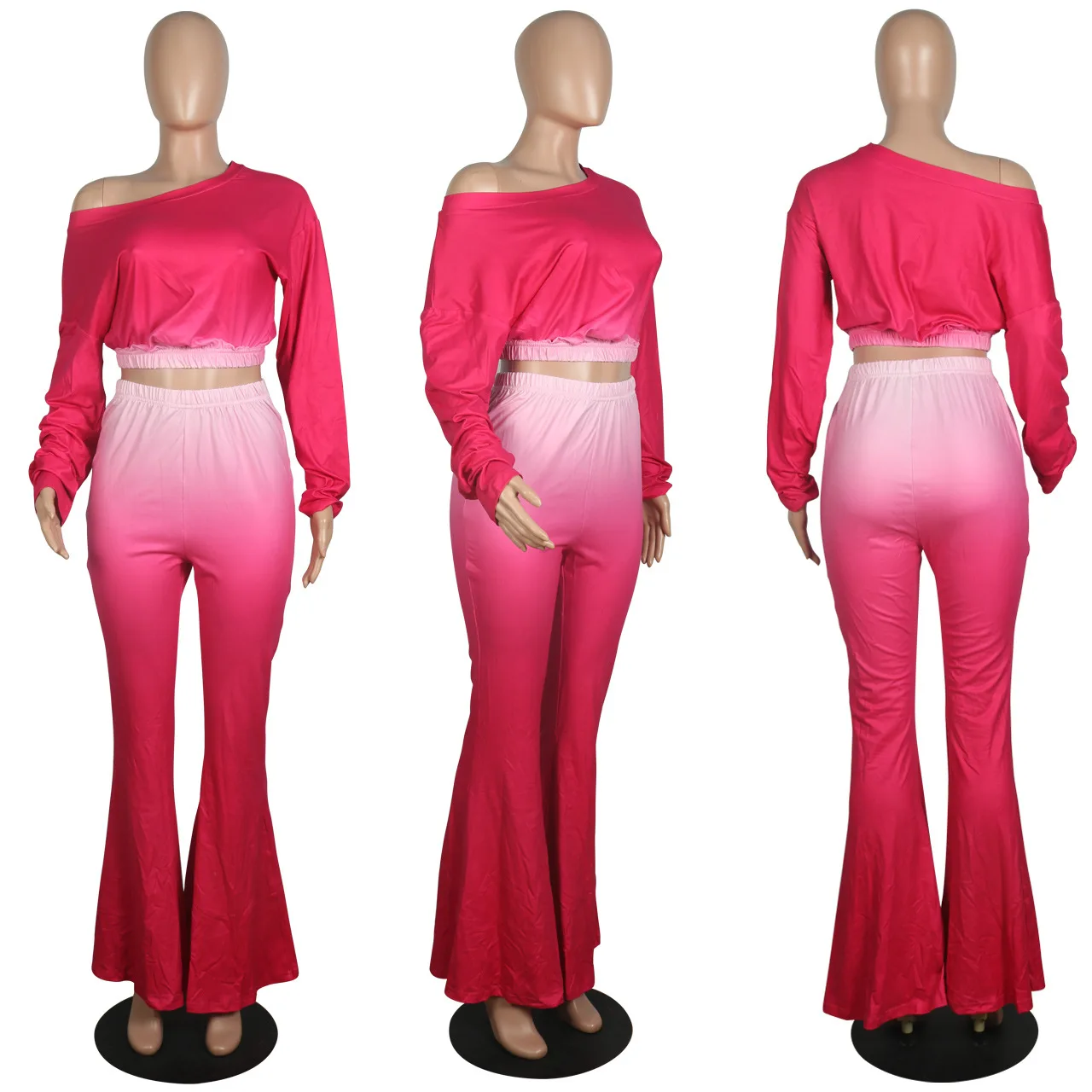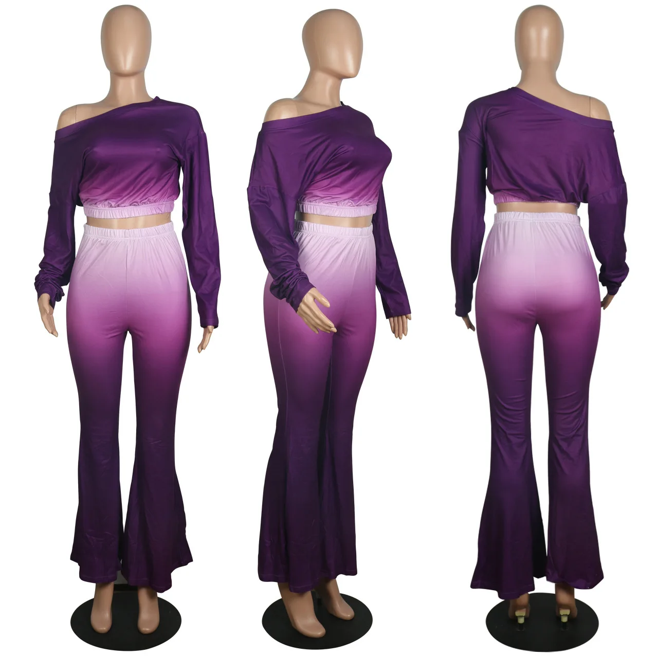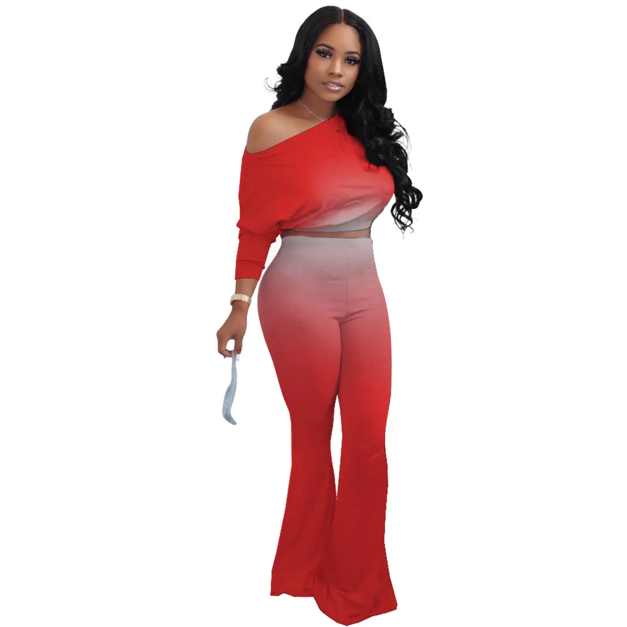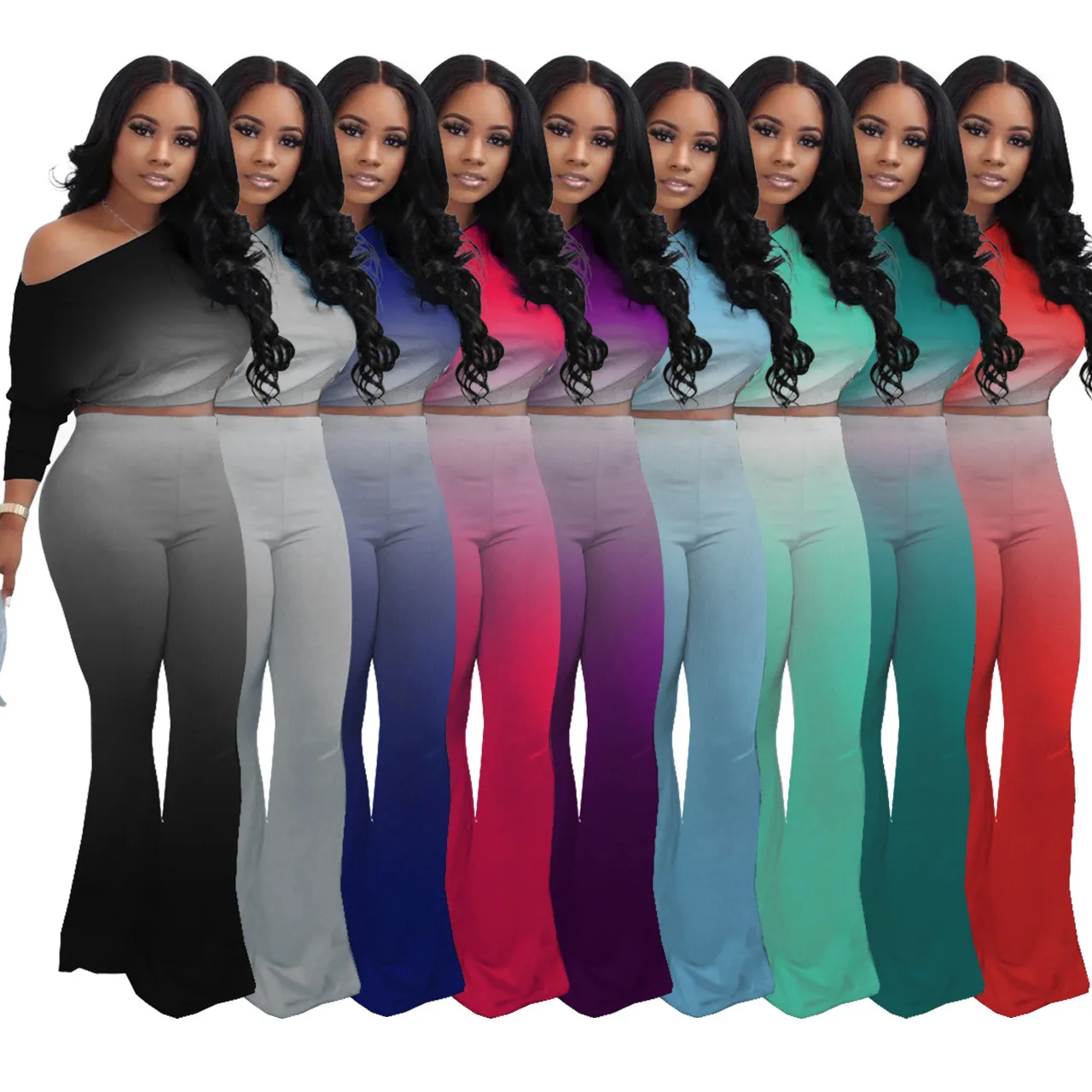 Stylish And Sexy Sloping Shoulders Gradient Color Crop Top women suit women sets woman tops fashionable