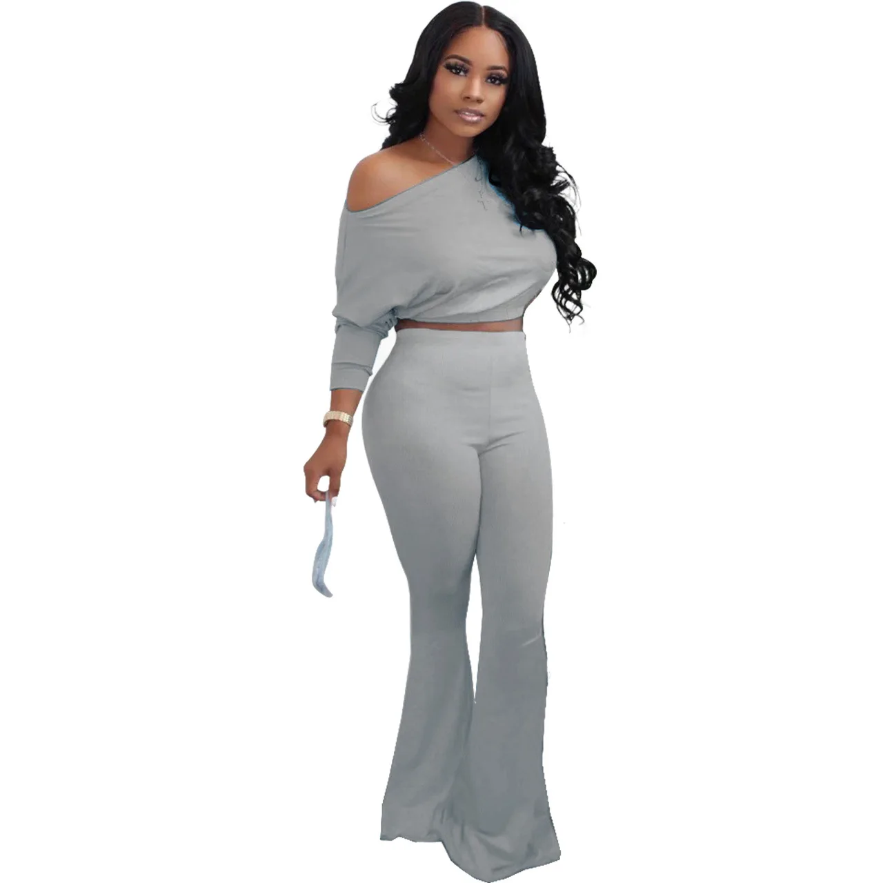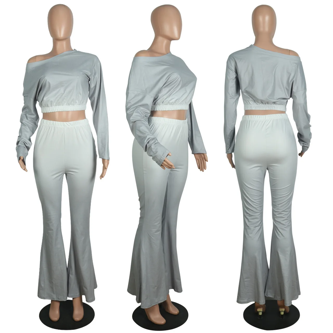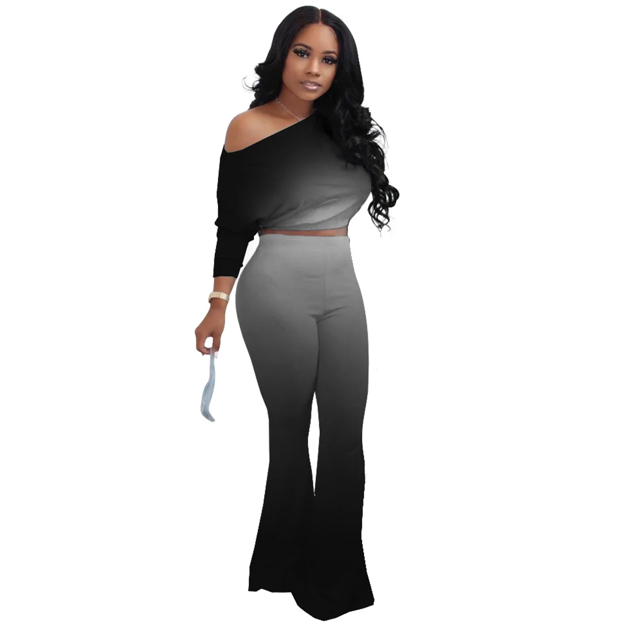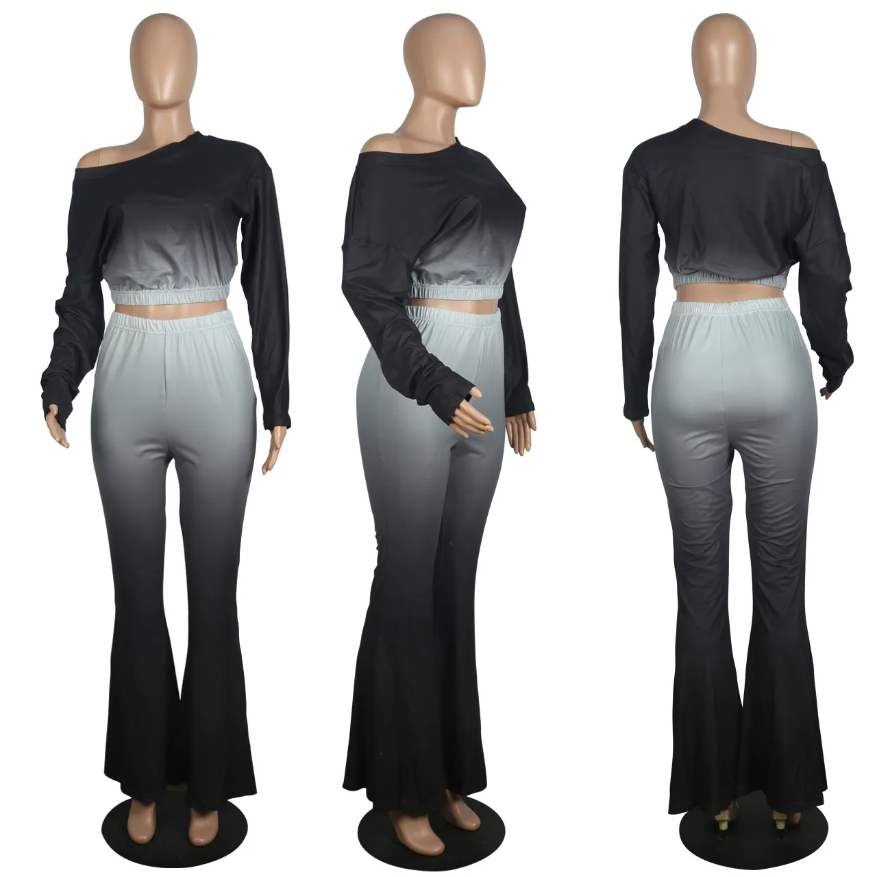 Stylish And Sexy Sloping Shoulders Gradient Color Crop Top women suit women sets woman tops fashionable