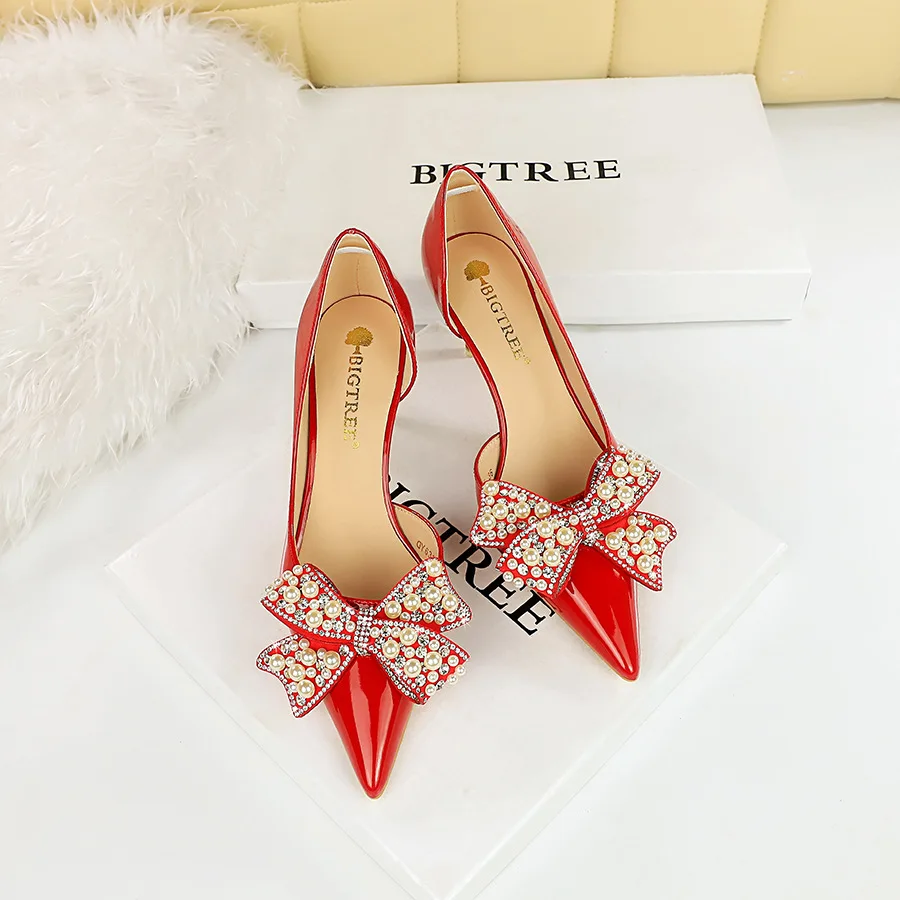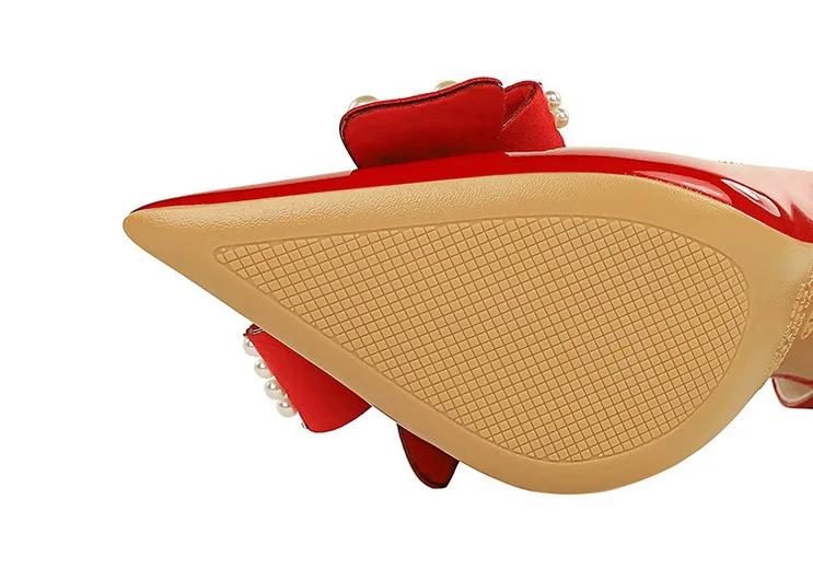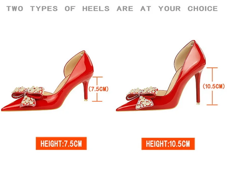 Stylish Bow Bridal Shoes Women High Heels Stilettos Pointed-toe Pumps PU Leather Daily Office Ladies Dress Shoes