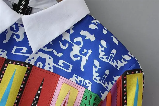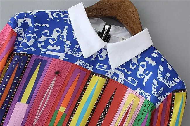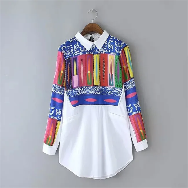 Stylish Ladies Women Print Career Long Sleeve Turndown Collar Top Blouse Shirts A893