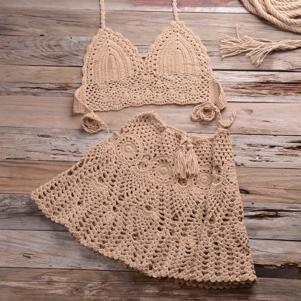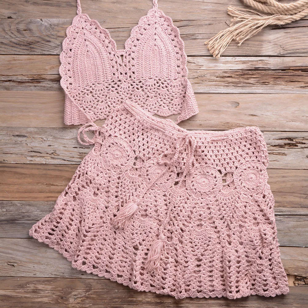 STYZ-6905+5909 Eco friendly swimwear women's crochet swimwear hand knit sexy split bikini suit ladies beachwear
