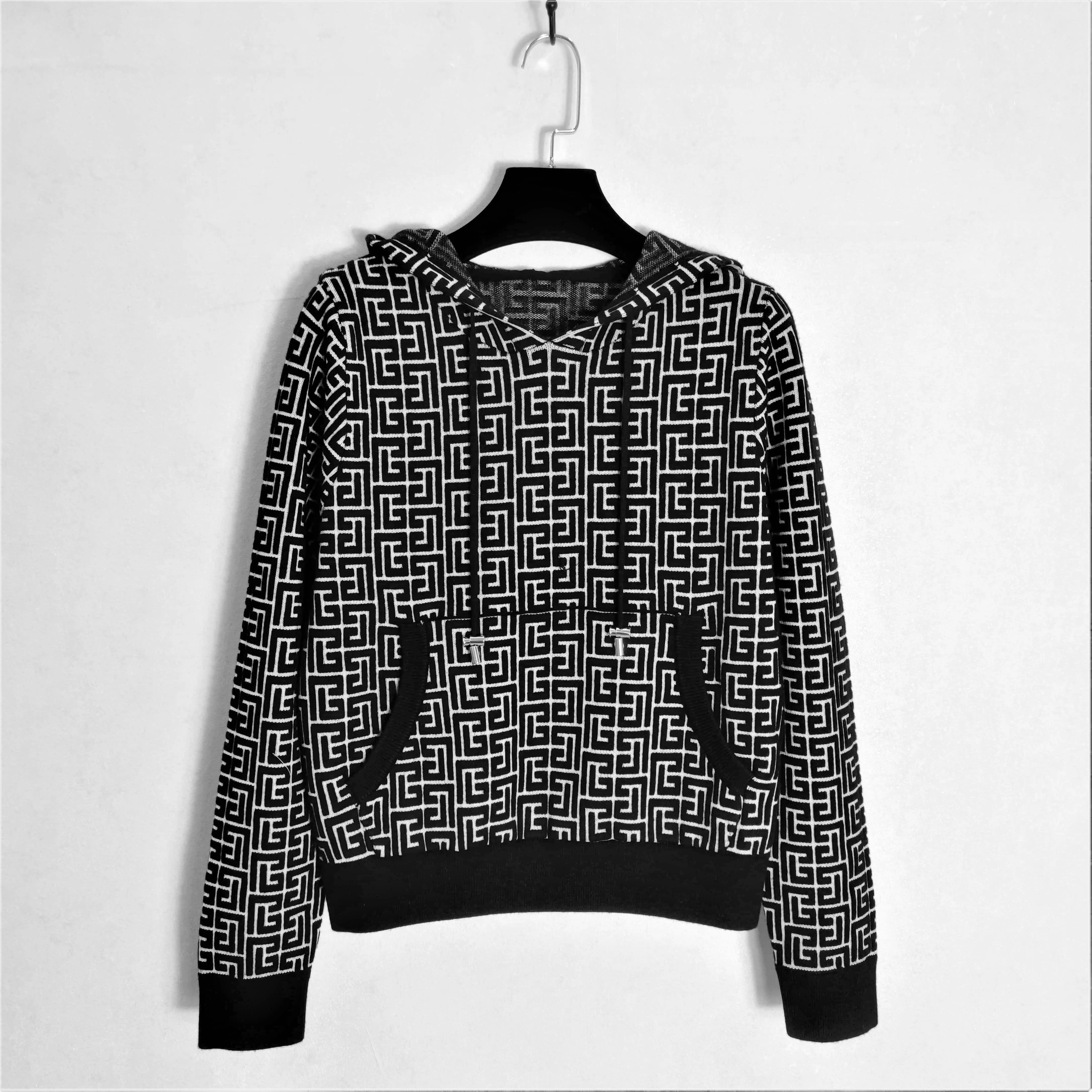 Sudaderas De Mujer Custom Logo Unisex Black Knit Sweater Hoodie Thunder Front Pocket Sweaters Hoodies Sweatshirts