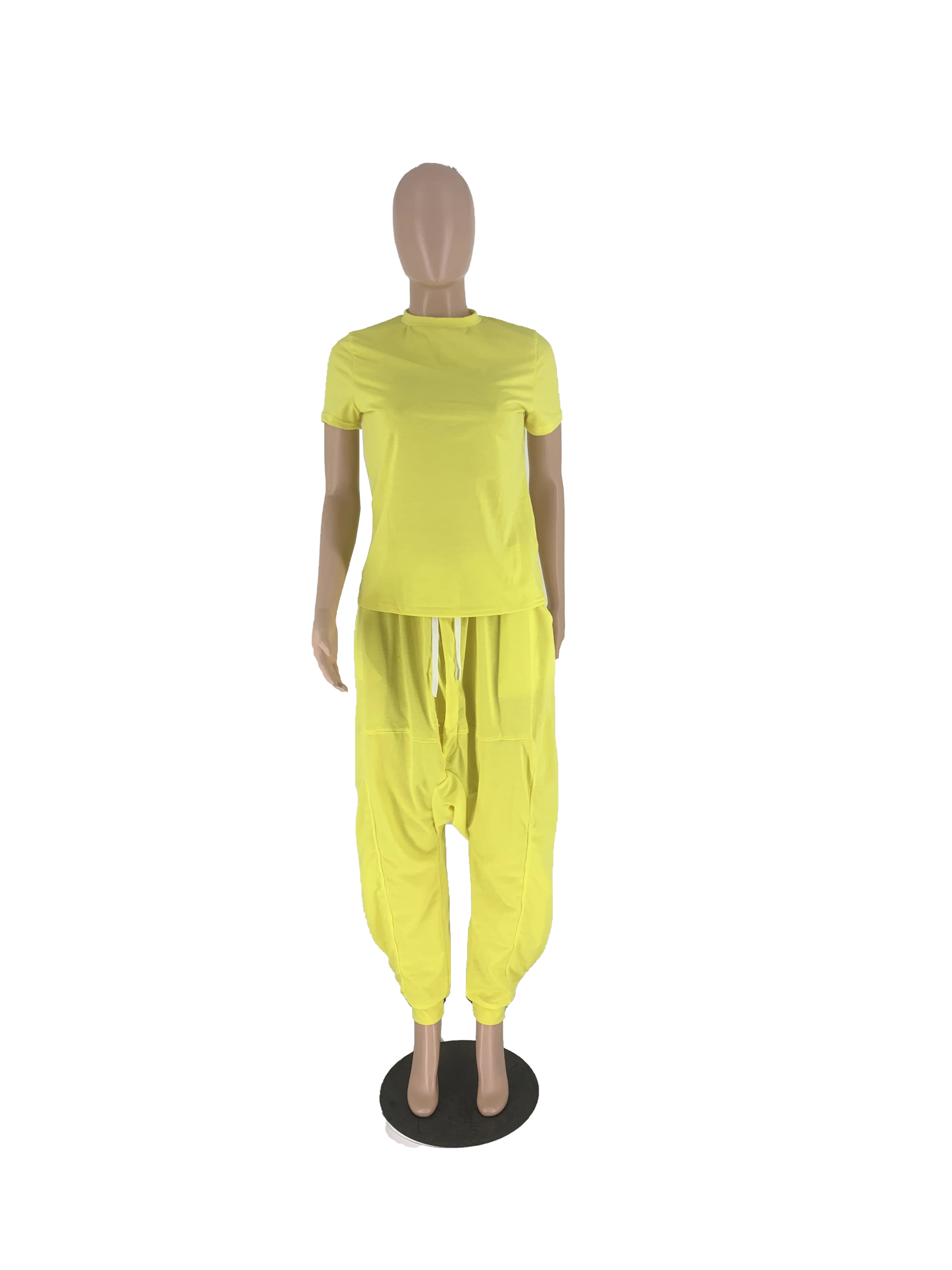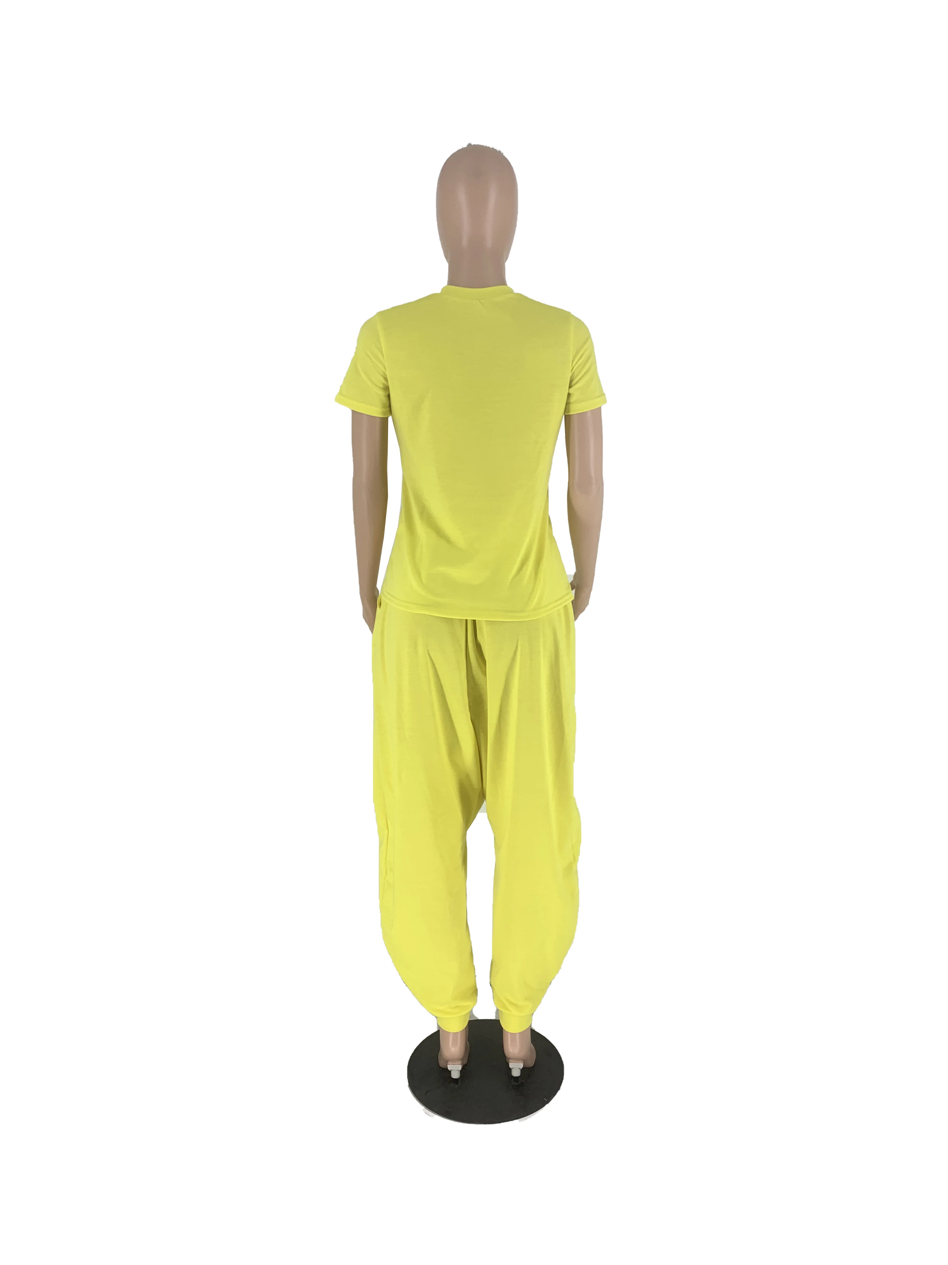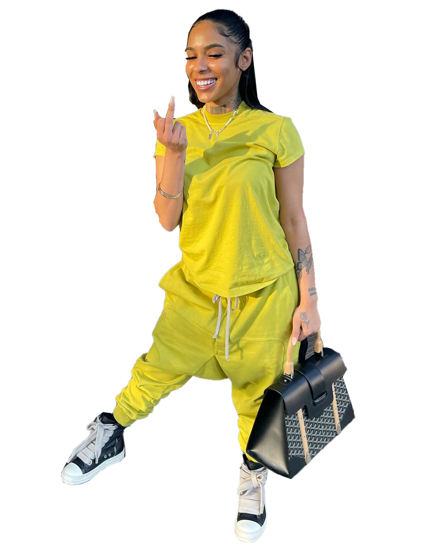 Summer 2023 Women Street 2 Piece Sets Solid Color Short Sleeve T Shirt and Drawstring Pants 2 pc Womans Oversized Jogger Sets