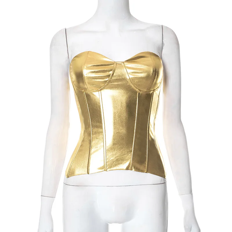 summer 2024 ladies sexy sparkly metallic golden silver fabric women tube top and shorts two 2 piece set clothes outfit for women