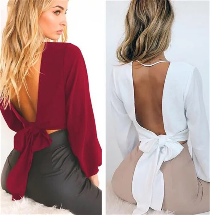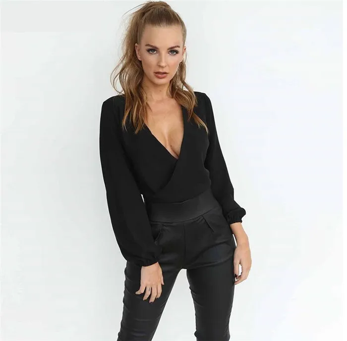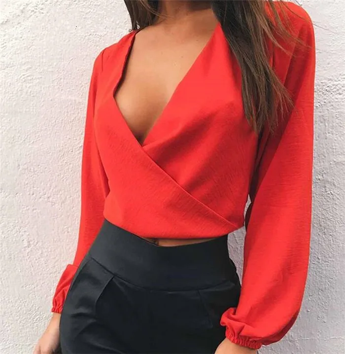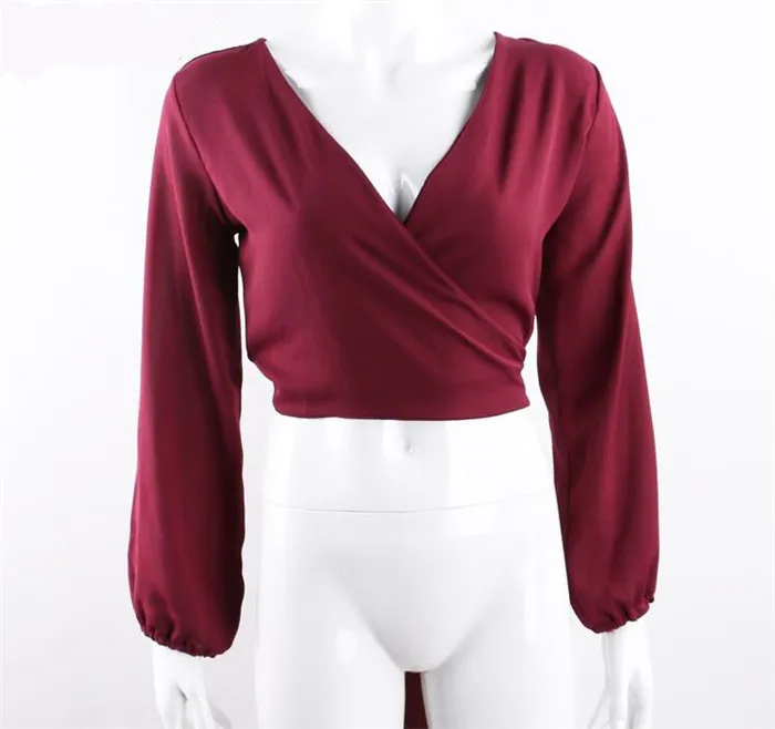 Summer blouse shirts solid color v-neck women sexy long-sleeved casual top