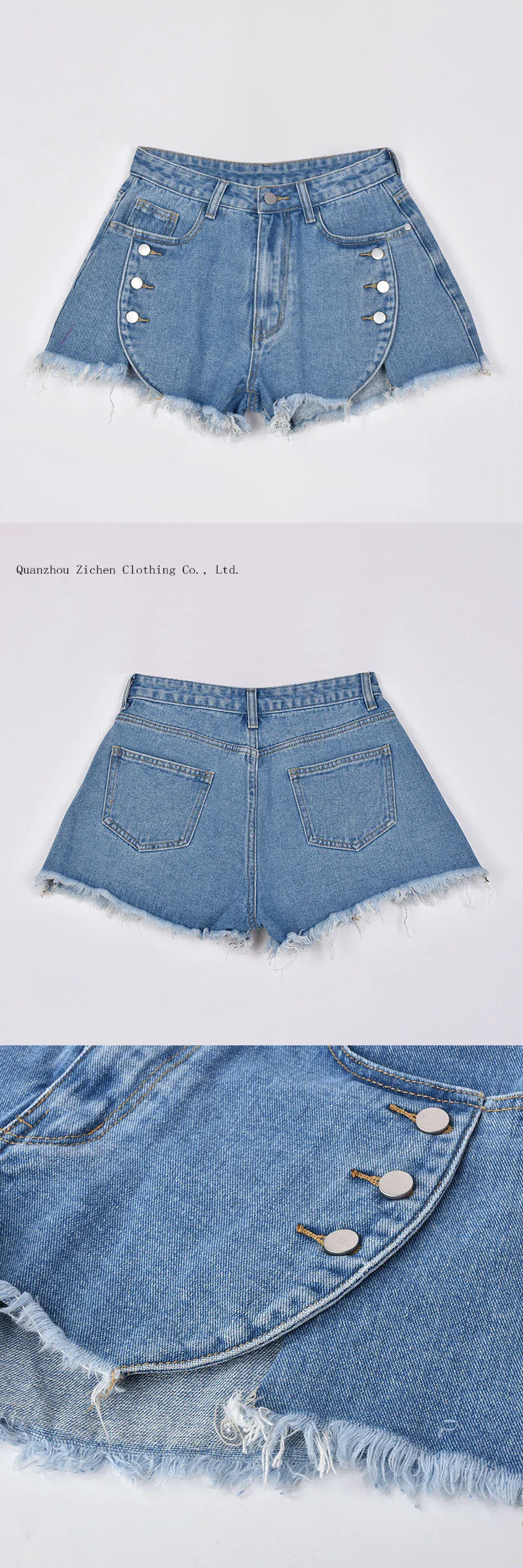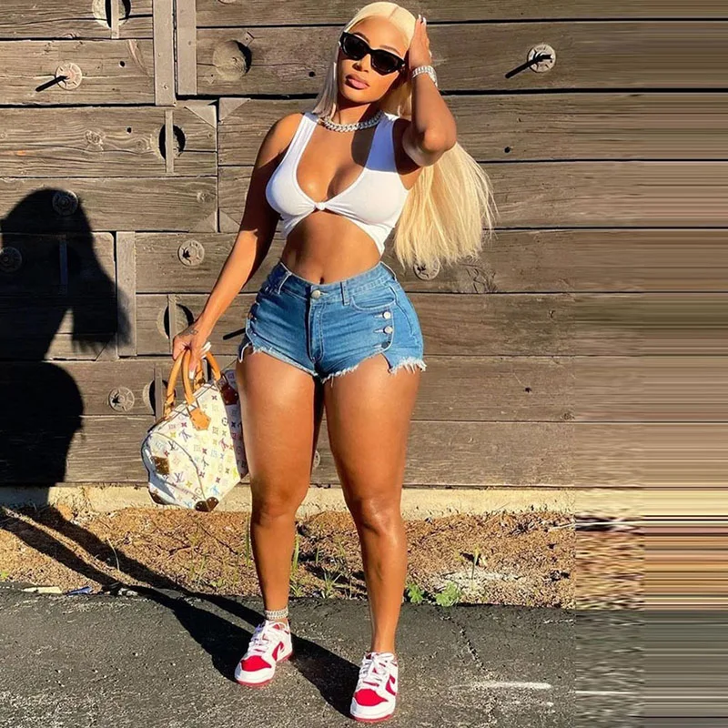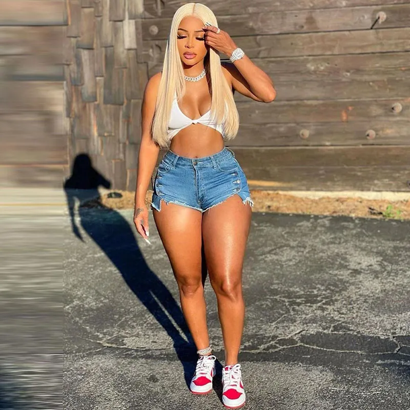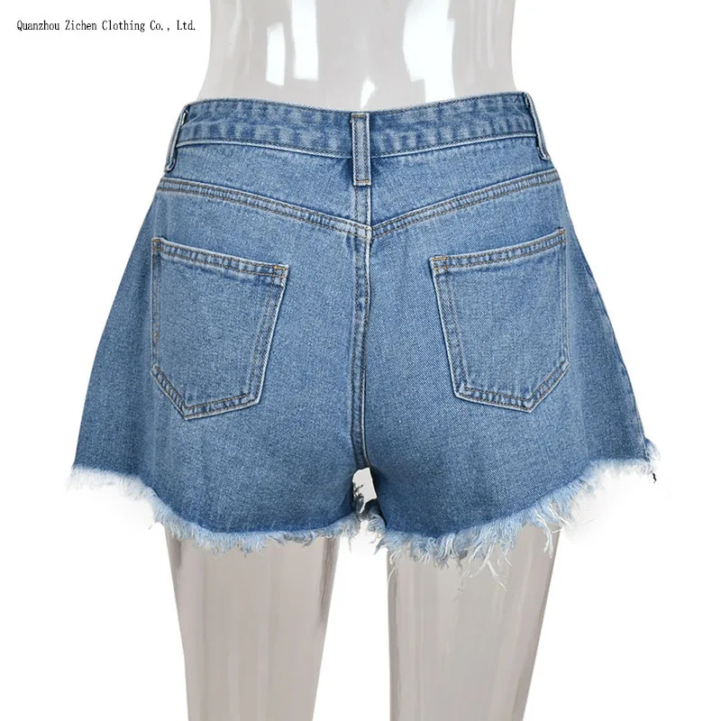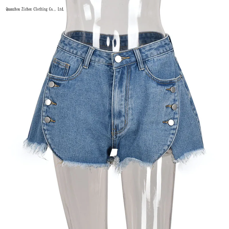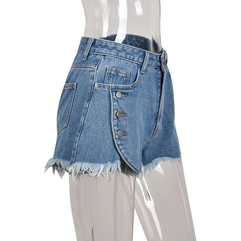 Summer Blue Denim Shorts Hight Waist Button Tassel Shorts Jeans Sexy Bodycon Pocket Short Pants Streetwear Club Outfits
