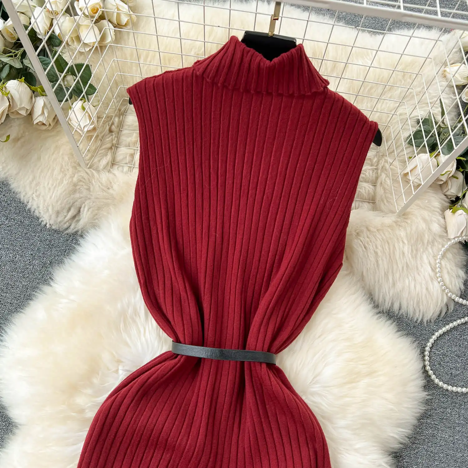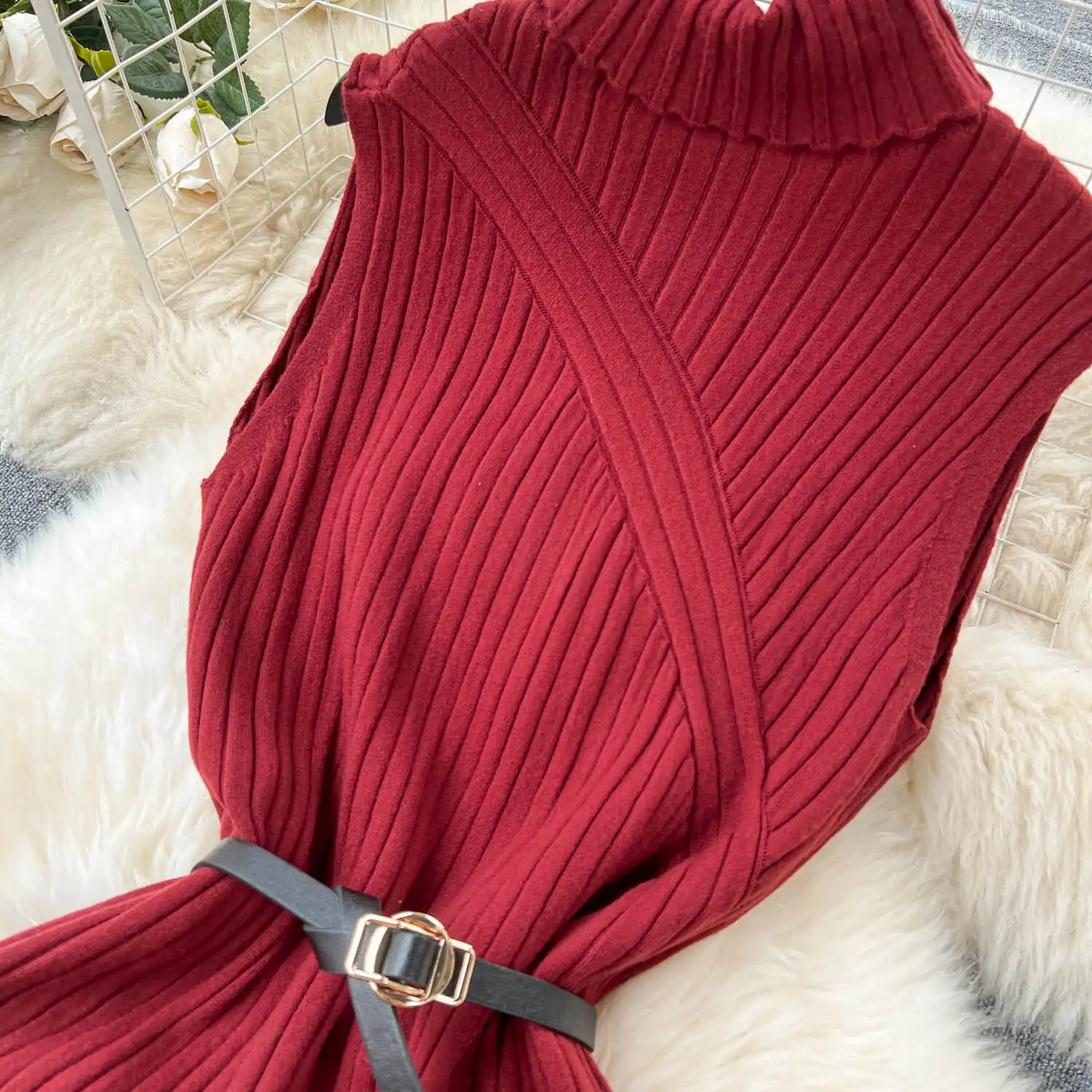 Summer Casual Turtleneck Tunic Slim Tank Midi Dress For Women Sleeveless Empire Lace Dresses Women's Fashion Dresses
