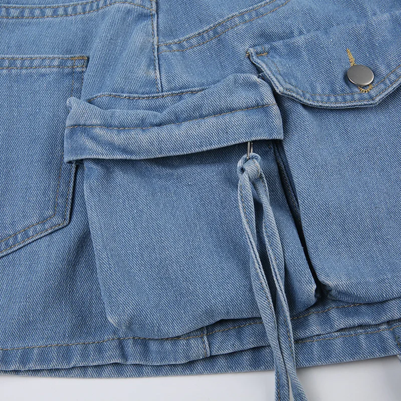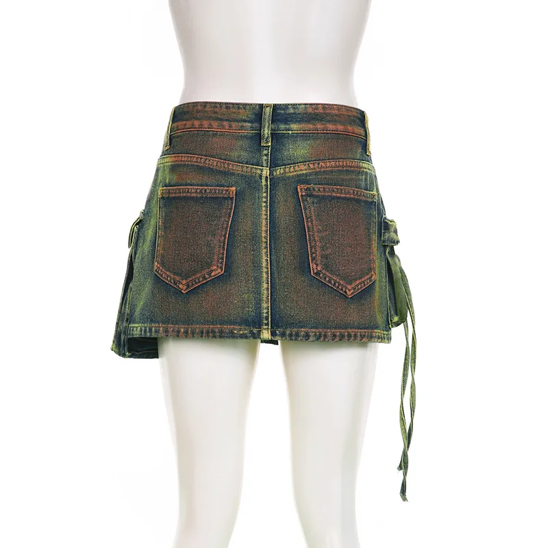 Summer Casual Y2K Women Tie Dye Big Pocket Denim Mini Skirt Sexy Cargo Skirt Mini Dresses