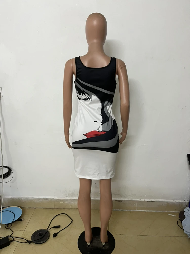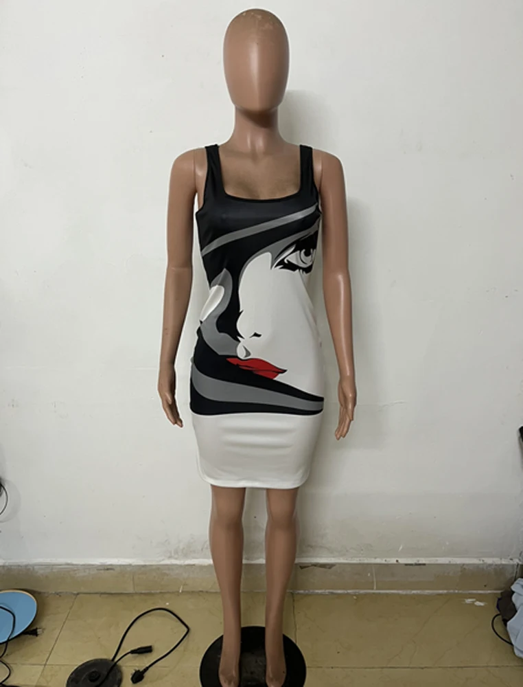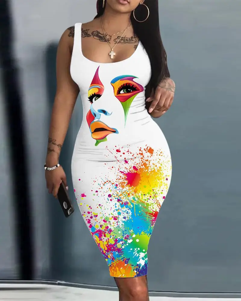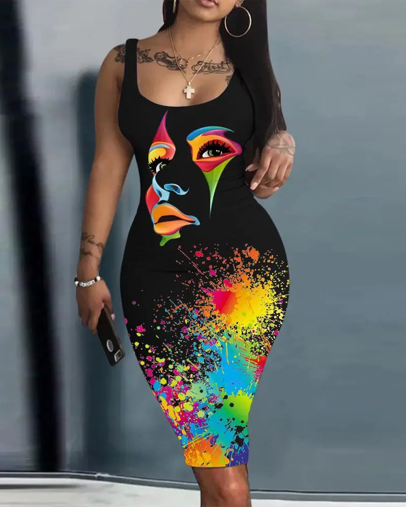 Summer Daily Dresses for Women 2023 Fashion Tie Dye Print Sexy Party Sleeveless U-Neck Bodycon Casual Dresses