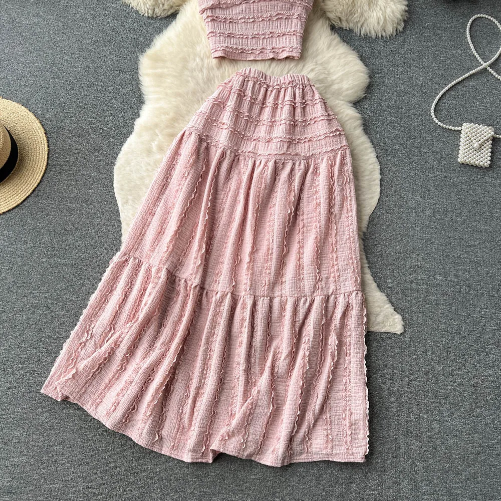 Summer Dress 2023 New Halter Top Short Style Full Swing Skirt Sweet Two-Piece Set