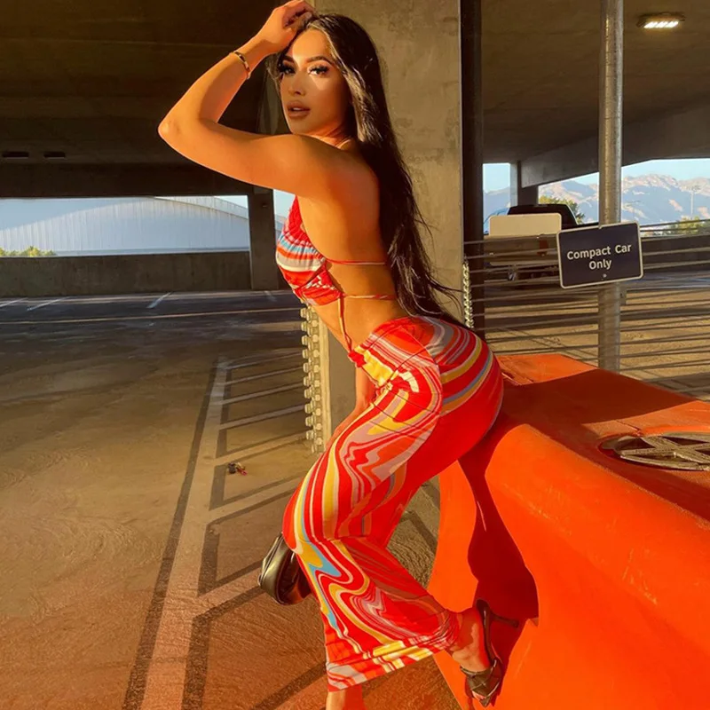 Summer Dress 2023 Printed Sexy Backless Lace-Up Womens Dresses