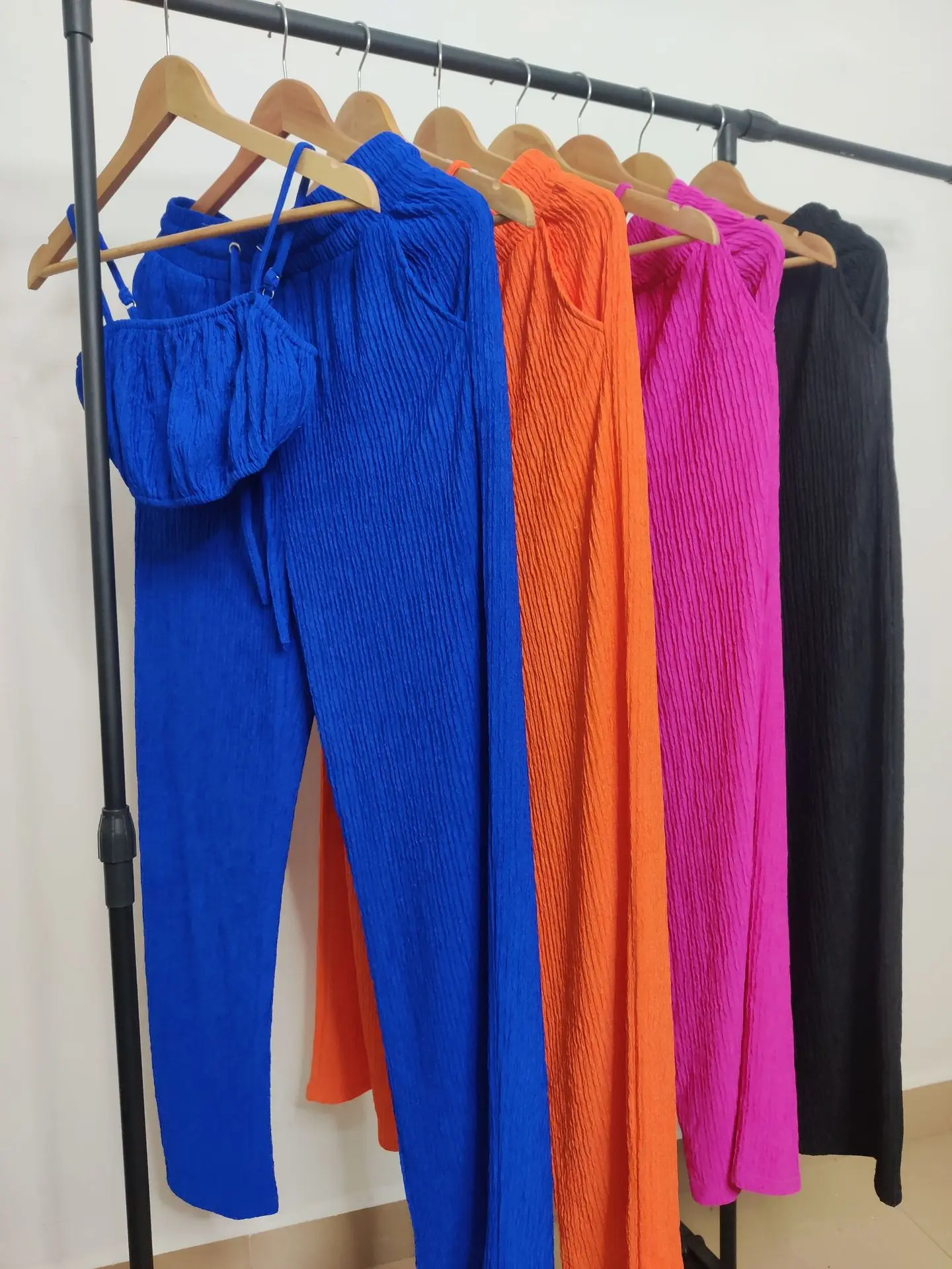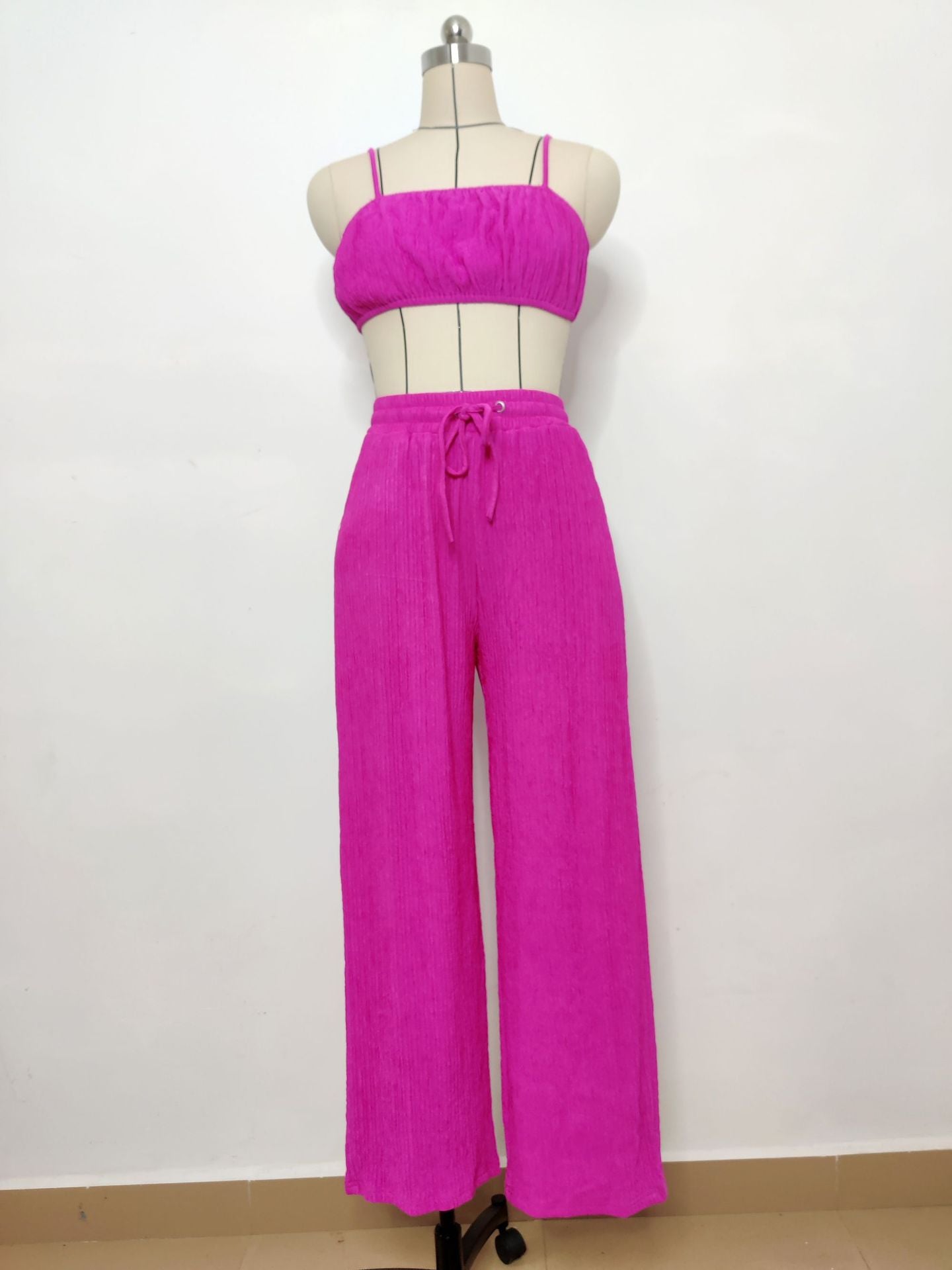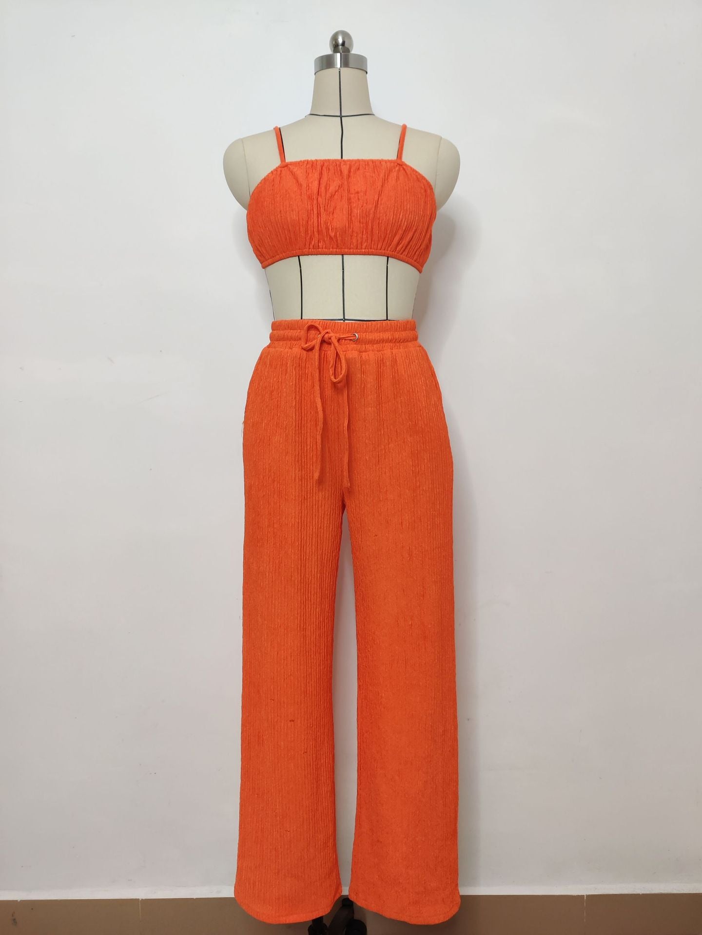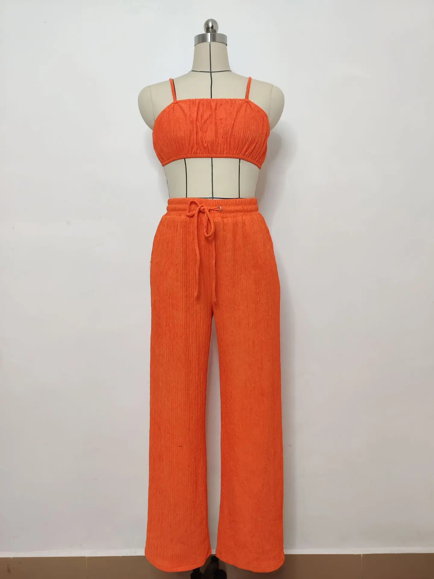 Summer Elegant Women Outfit Solid Sexy Pleated Halter Tops And Flared Trousers Plus Size 2 Piece Pants Set Women