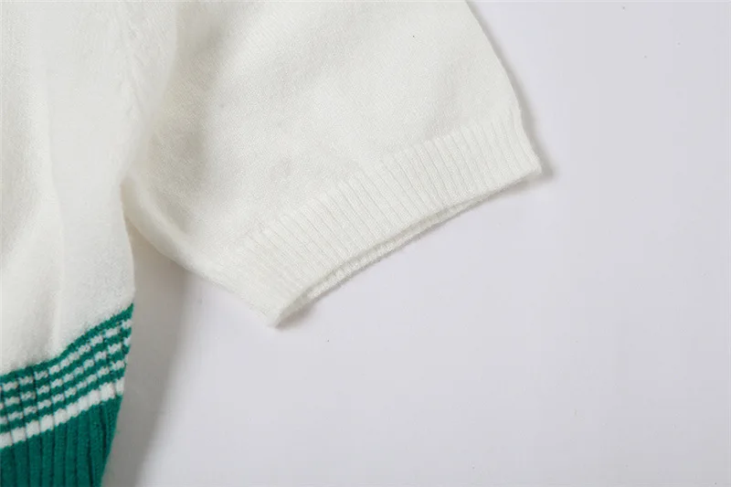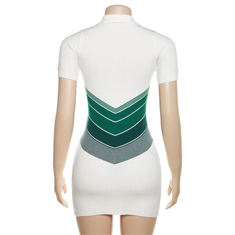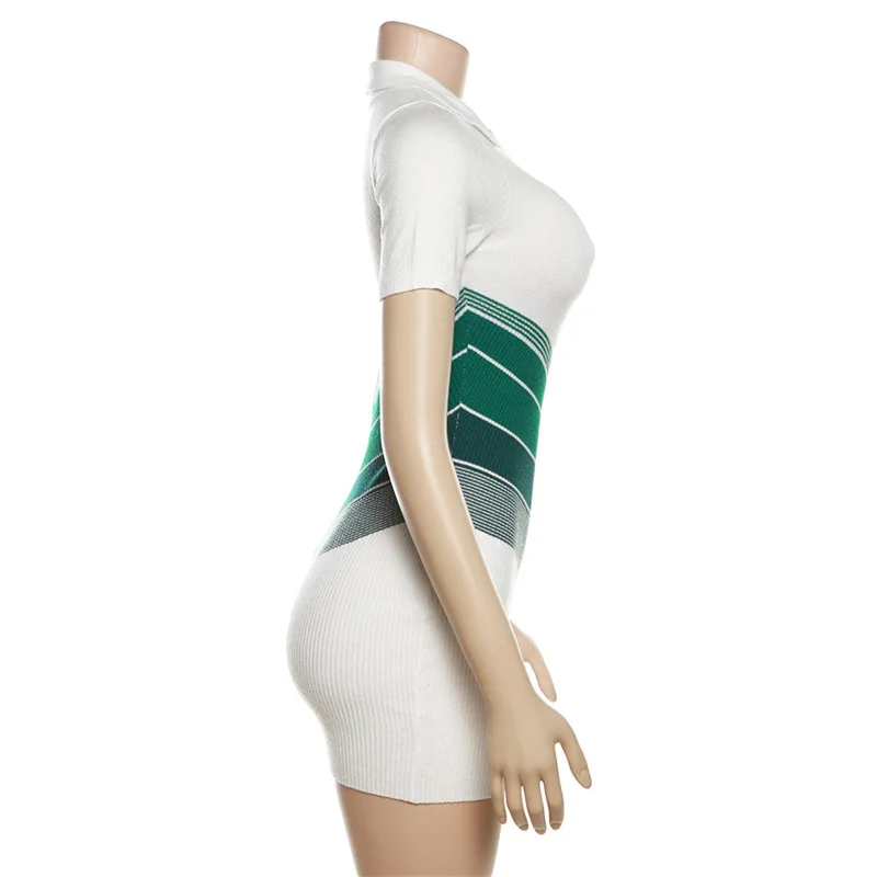 Summer Fashion Color Block Polo Collar Knitted Mini Bodycon Dresses Women Lady Elegant Short Sleeve Casual Dress
