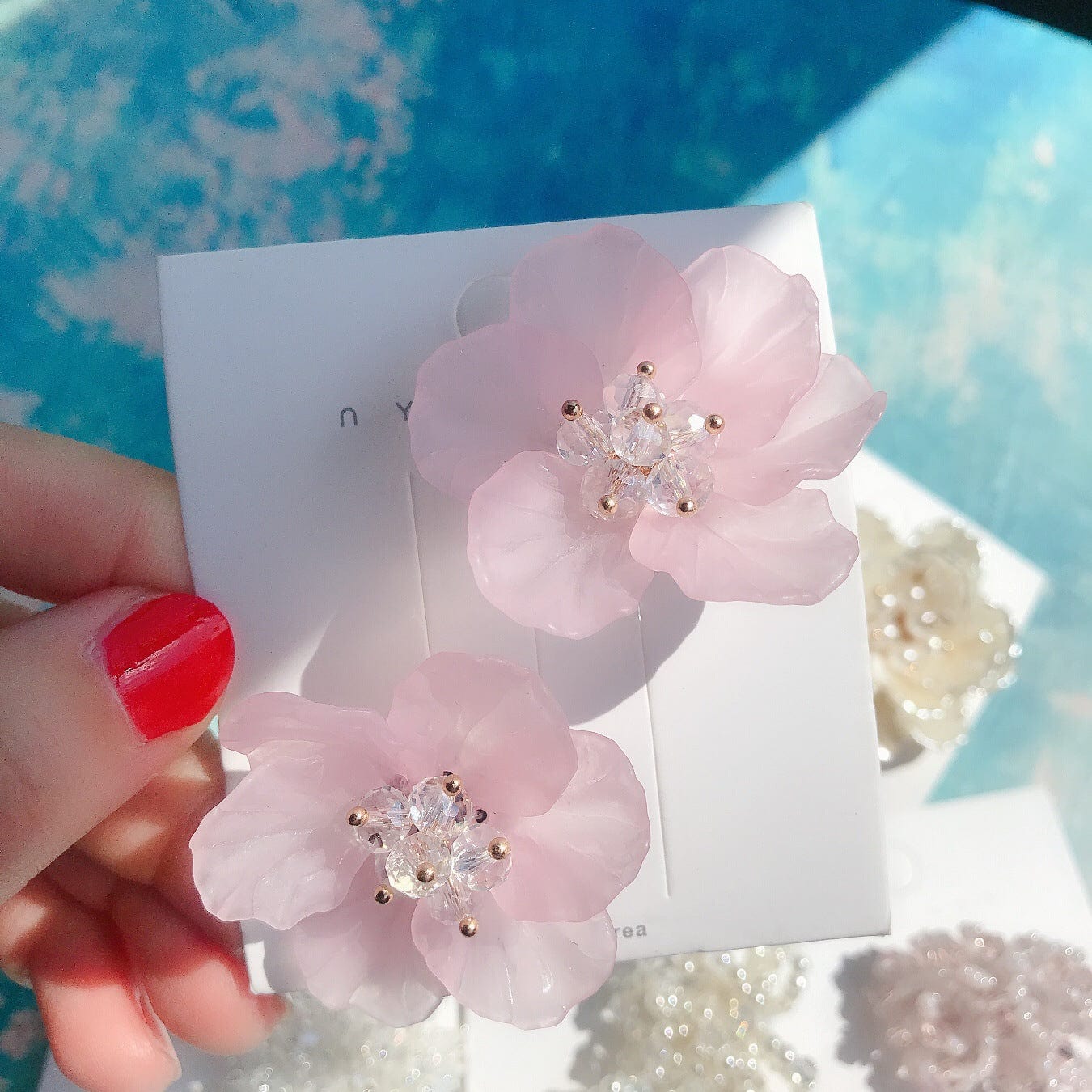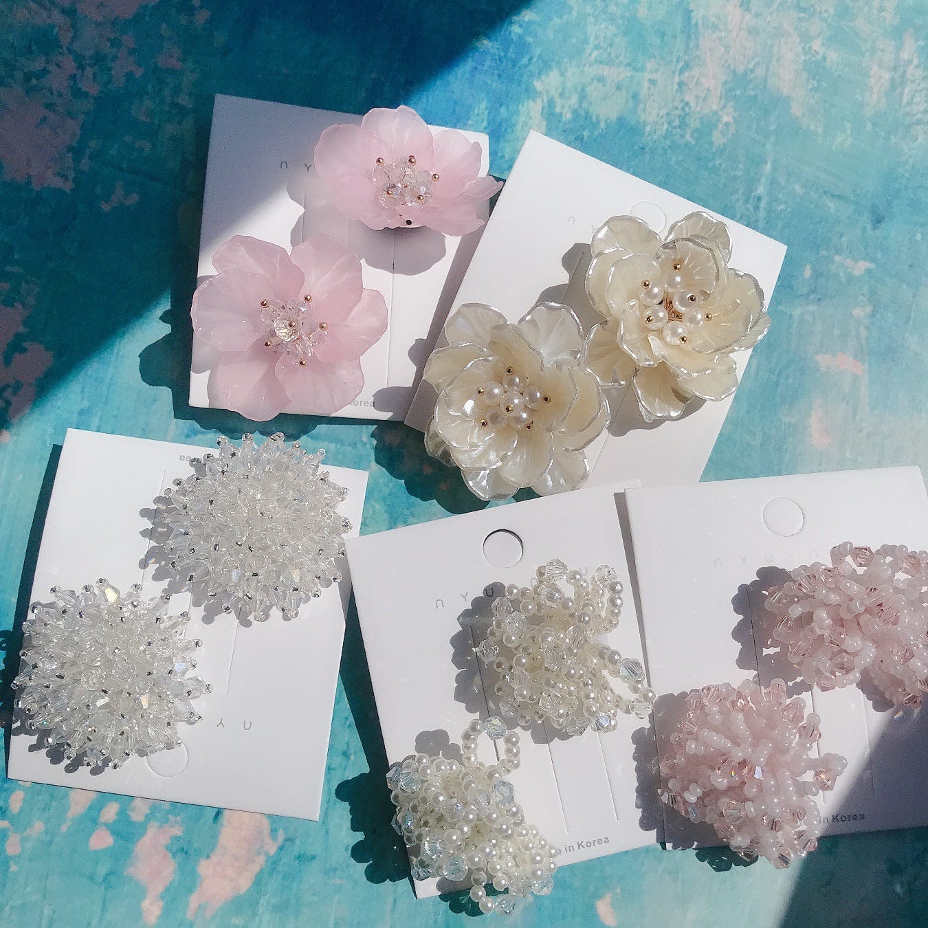 Summer Flower Earrings Hand-made Pearl Beaded Korean Fashion Shiny Crystal Earrings Sweet