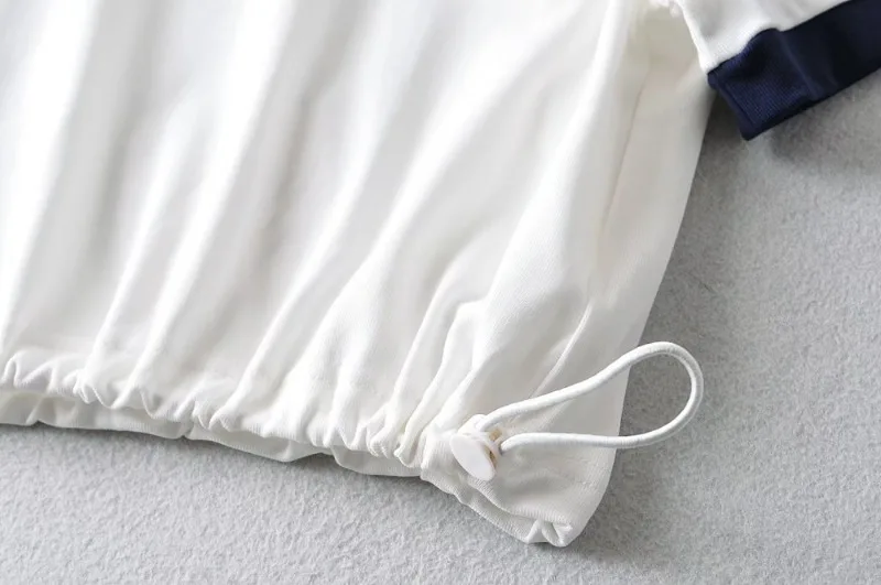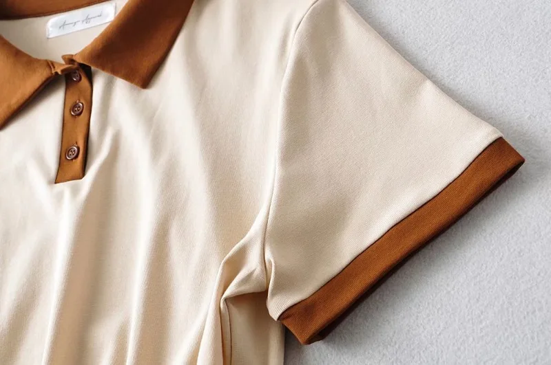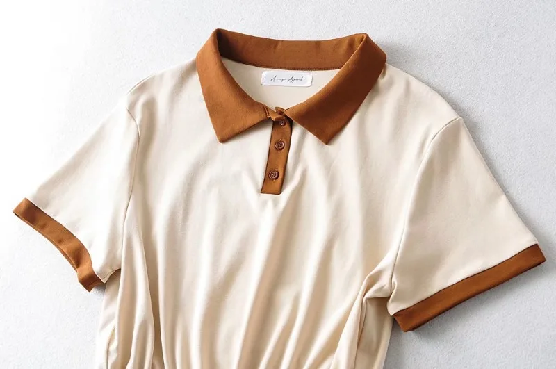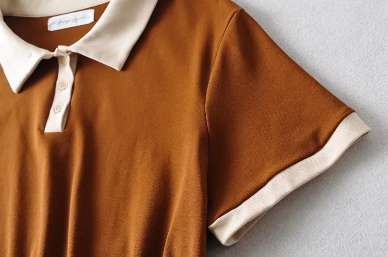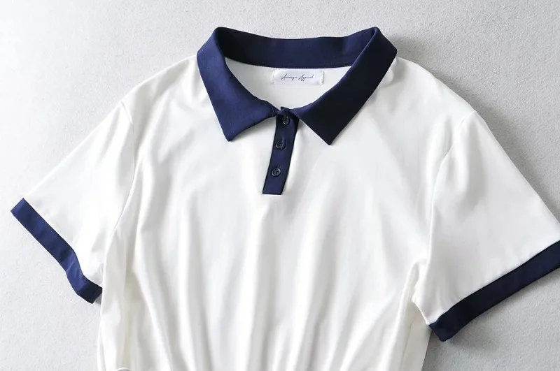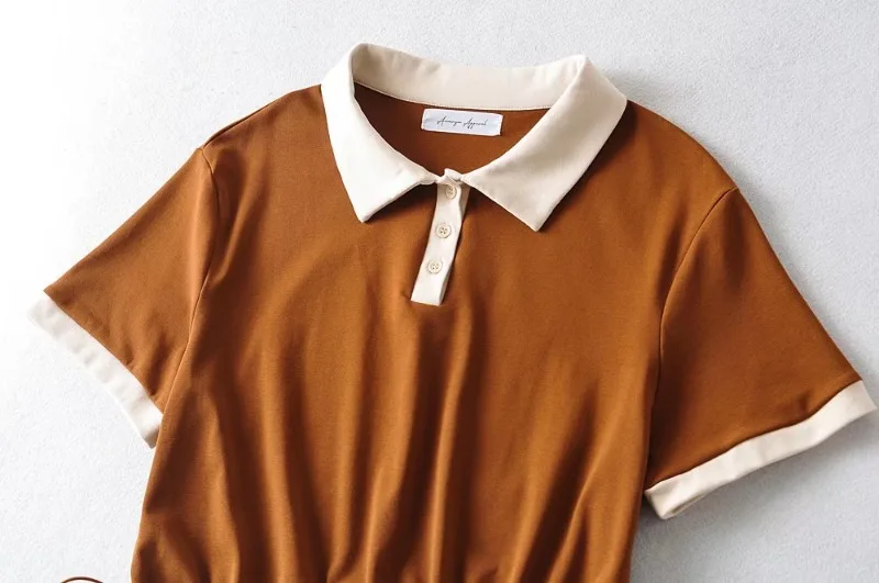 Summer Hot Girl Contrast Color Basic String Bottom Crop Women Front Button Polo T-shirts
