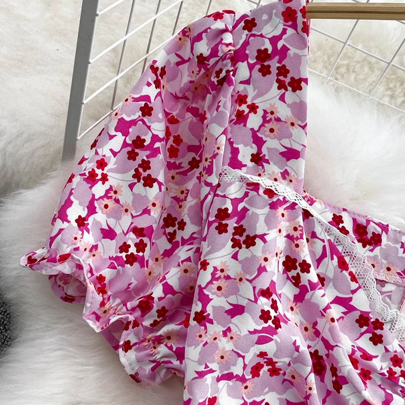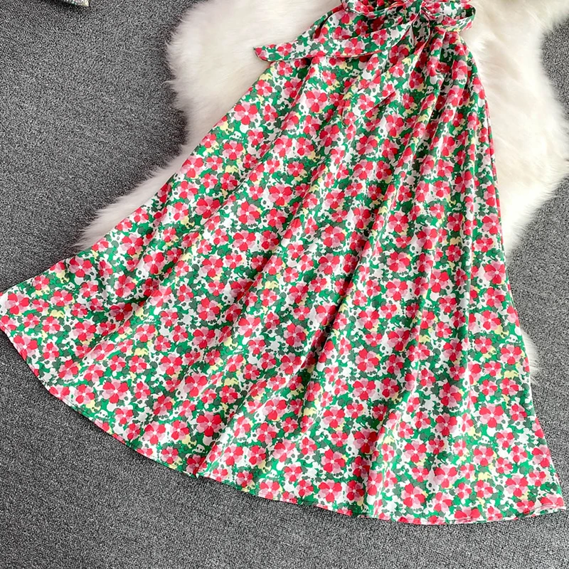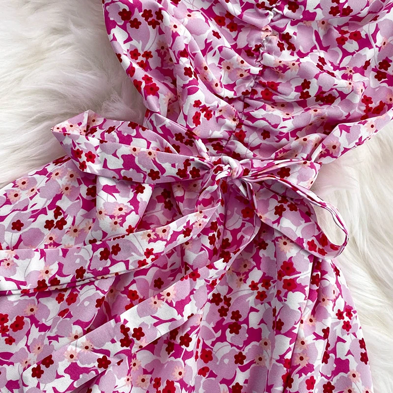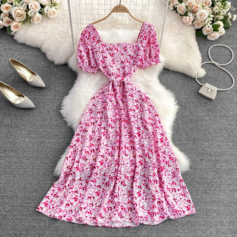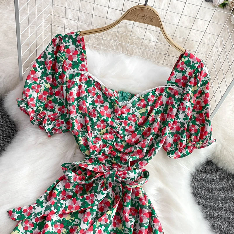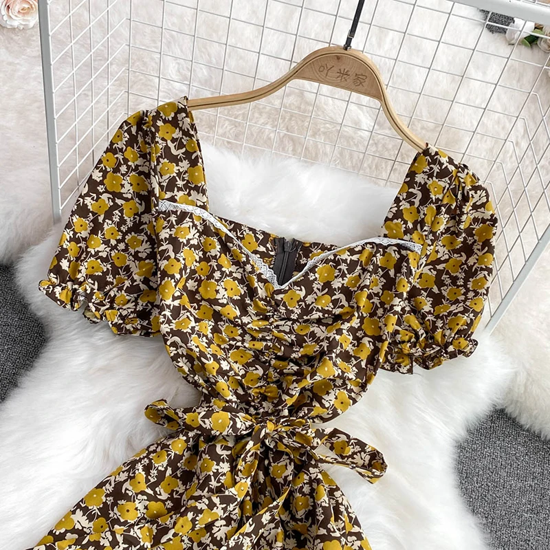 Summer Hot Sale Short Sleeve Midi Dress Woman Sashes Square Collar Korean Fashion Fairy Temperament Women's Dresses Casual Beach