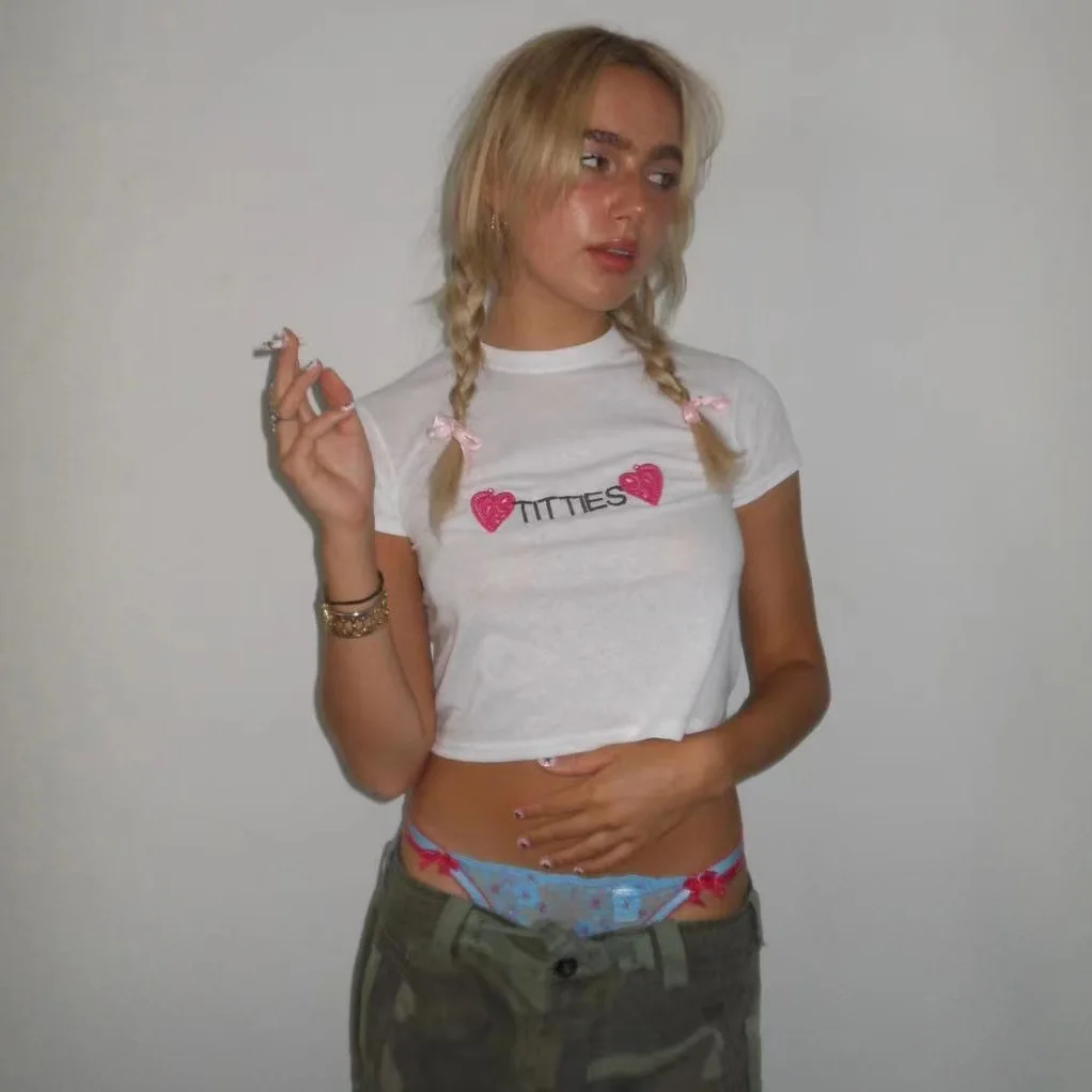 Summer hot selling women's baby tee y2k short sleeve custom embroidered crop top graphic baby tees