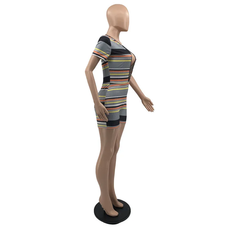 Summer Ladies Deep V Neck Bodycon Club Wear Woman Stripe One Piece Shorts Jumpsuits Sexy Playsuits