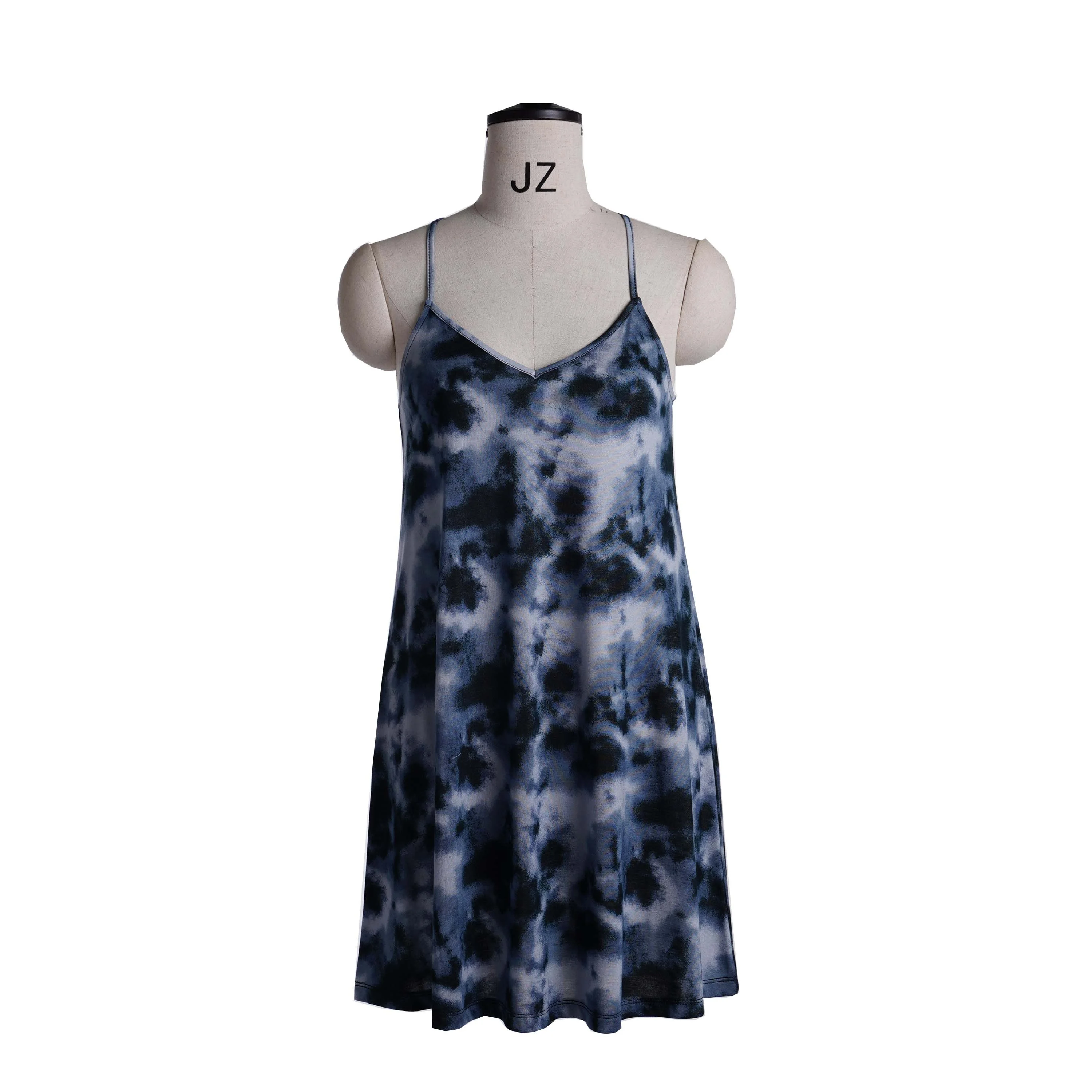 Summer Long Casual Trending Elegant Sexy Sleeveless Spaghetti Straps a Line V Neck Clothes Tie Dye Beach Wear Women Dresses