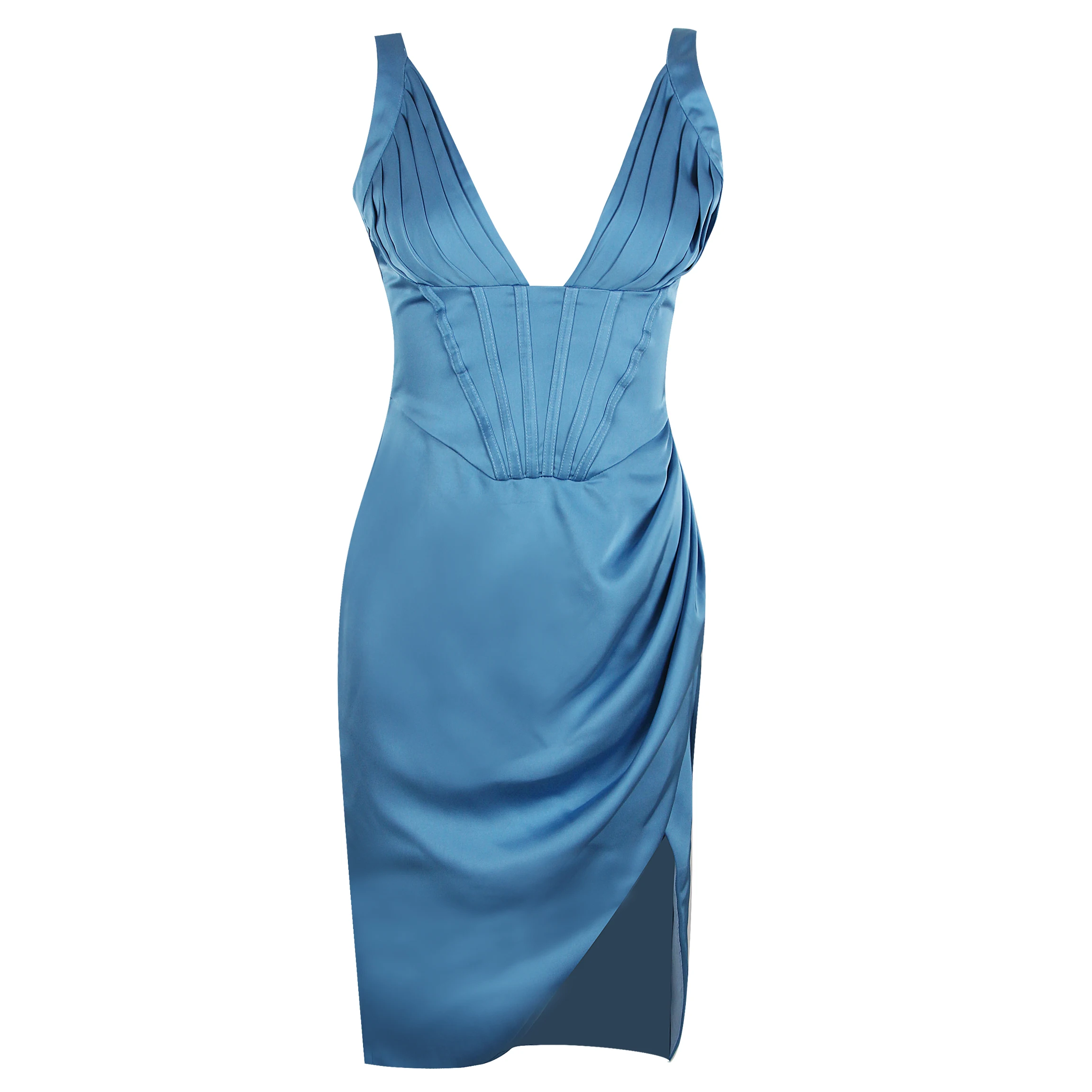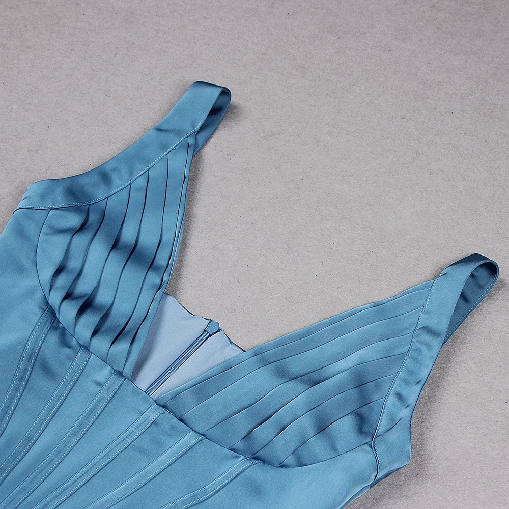 Summer New Deep V Suspenders Pleated High Waist Open Fork Ladies Temperament Dress