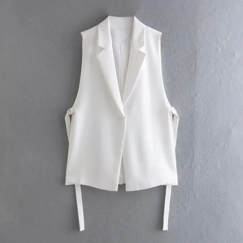 Summer New Fashion Vintage Suit Vest Ladies Elegant Sleeveless Business Blazers Top Casual Women's Vest Waistcoat