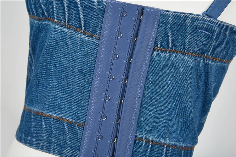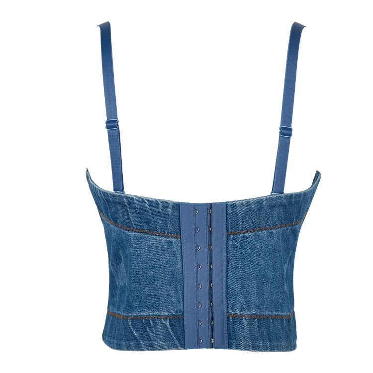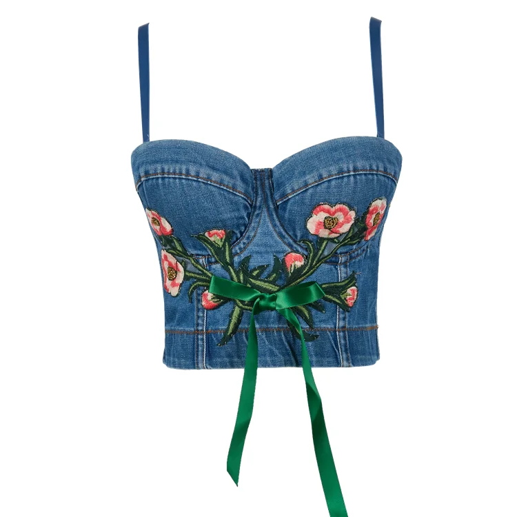 Summer New Sexy Denim Tops Roses pattern embroidery Cowboy Sling corset,Ideal for parties