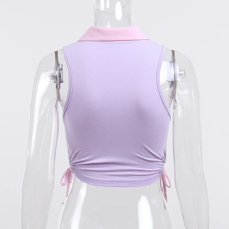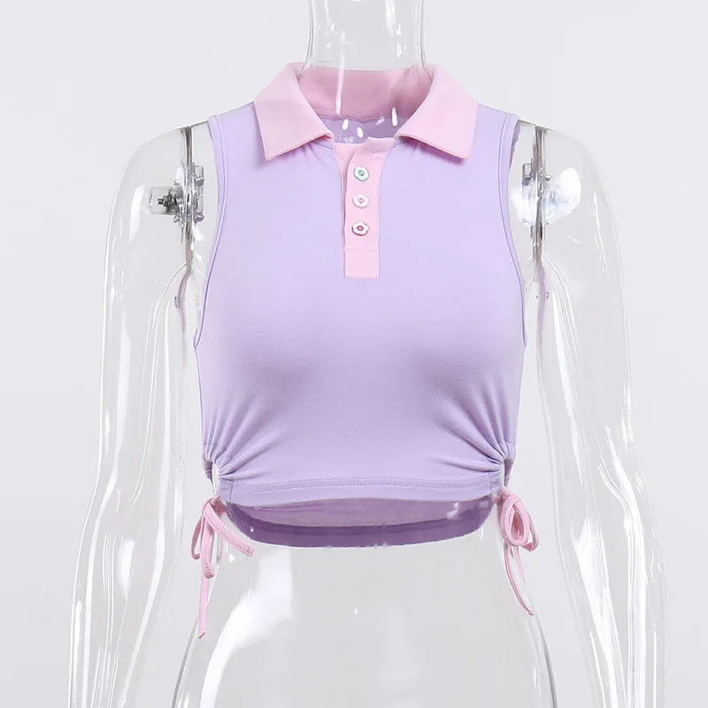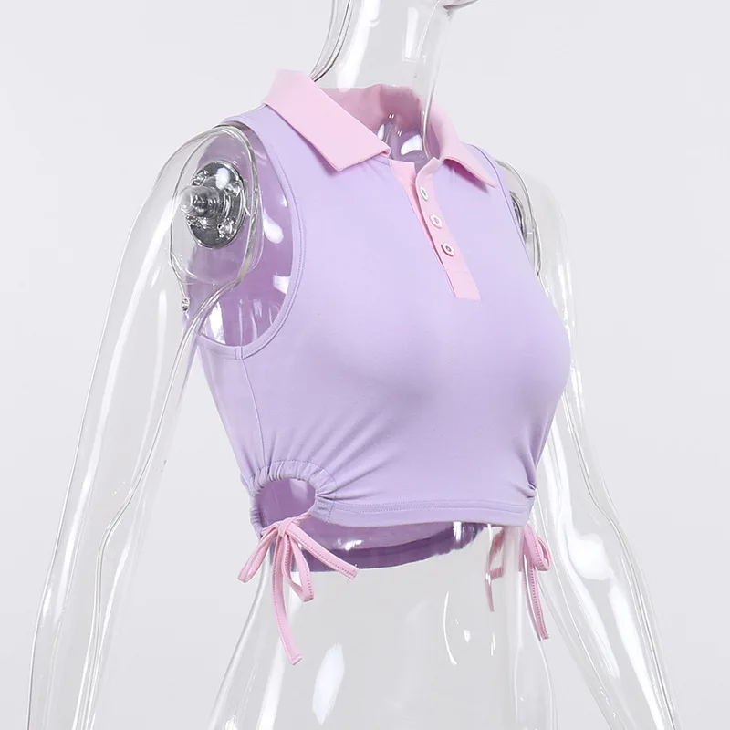 Summer new sexy slim hollow strap contrast color pure polo vest women tank tops