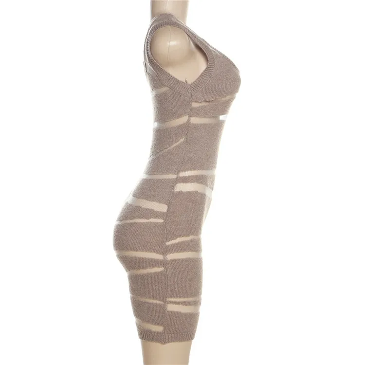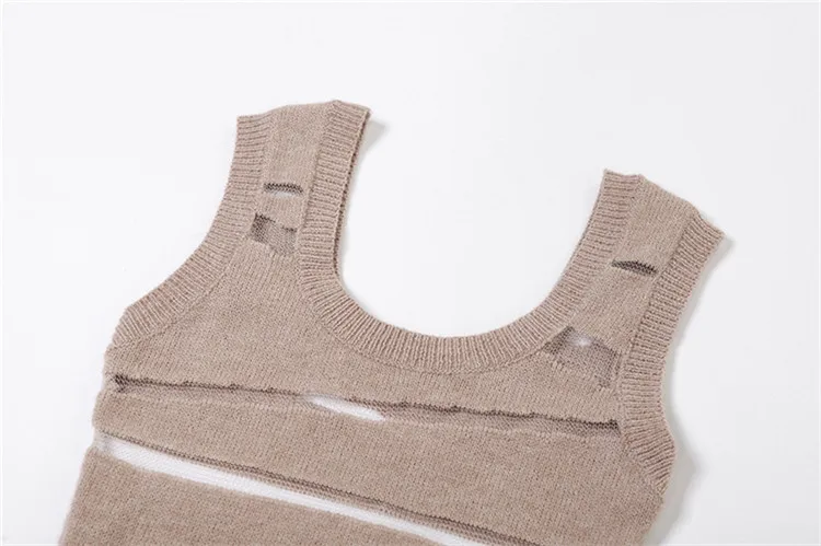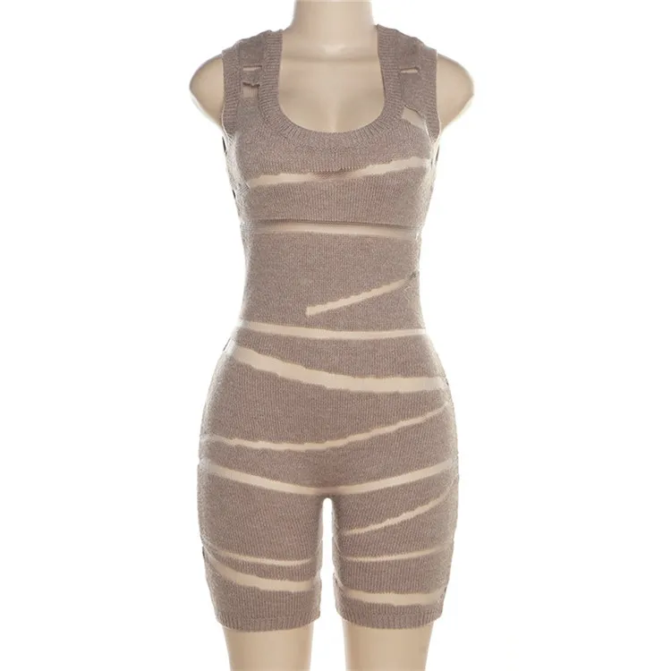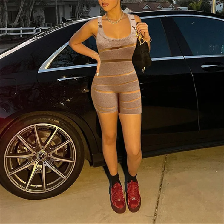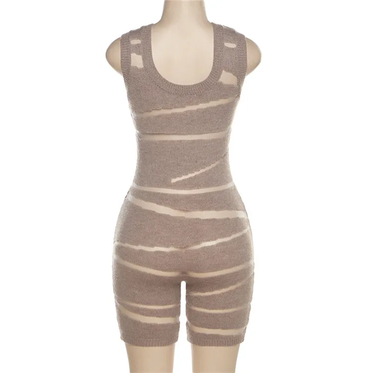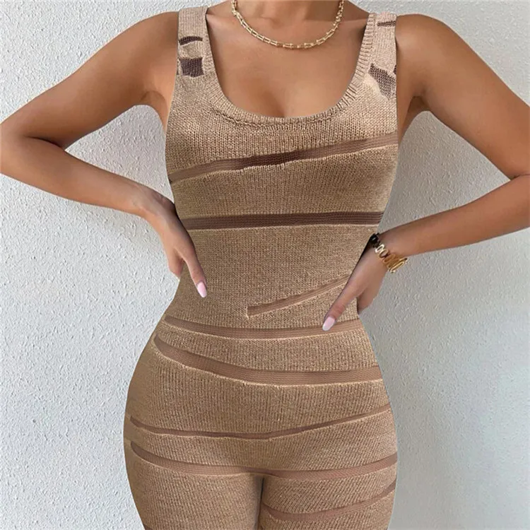 Summer New Y2K Fashion Simple Style Jumpsuit Women's Sexy Suspenders Sleeveless Mesh Patchwork Knitted Jumpsuit