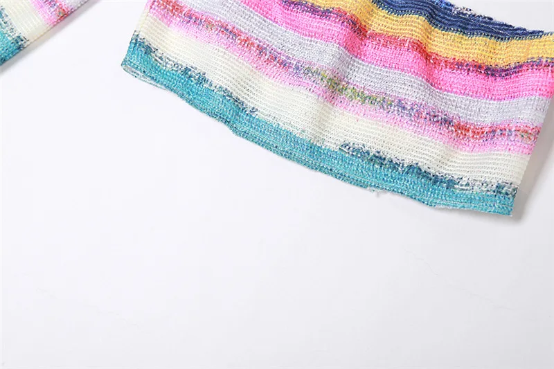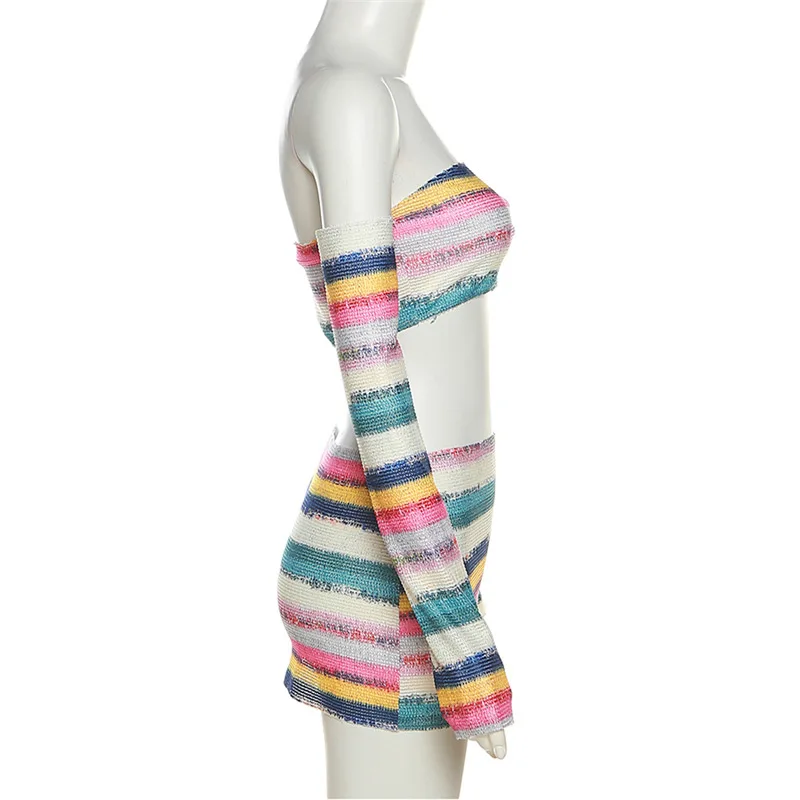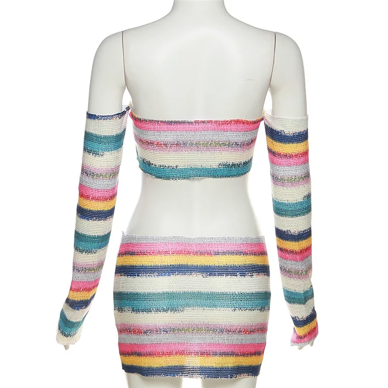 Summer newest club striped off shoulder crop top and skirt set casual knitted sexy two piece sets women