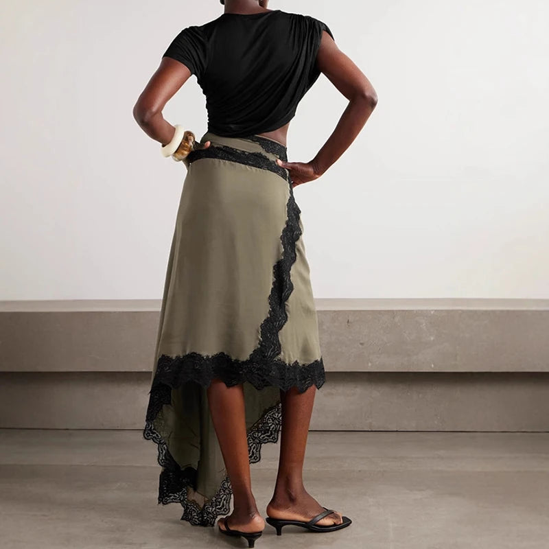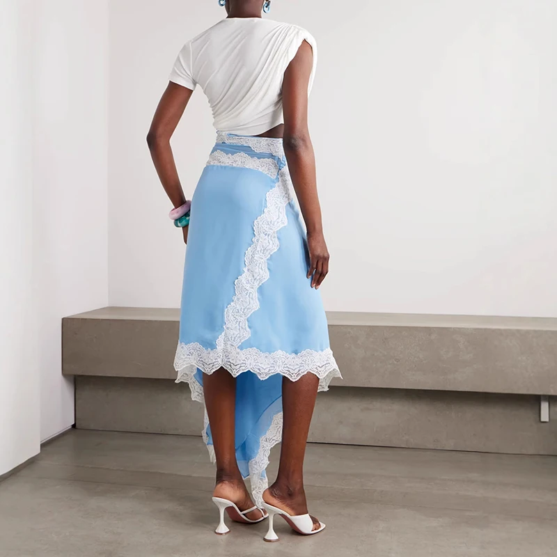 Summer O-neck Short Sleeved Long Dress Lace Patchwork Women's Evening Dress New 2025 Fashionable Hollow Irregular Maxi Dresses
